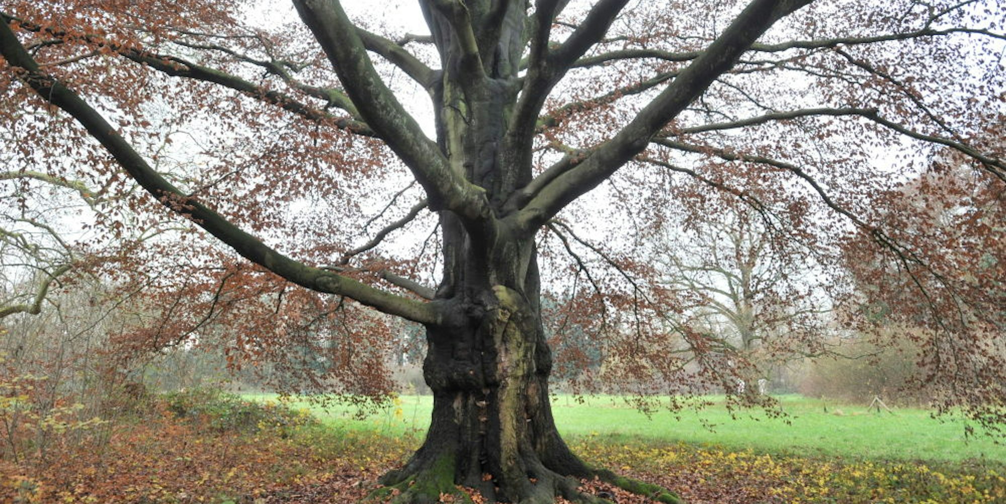 Die mächtige Blutbuche soll angeblich vor rund 240 Jahren bei der Anlage des Schlossparks gepflanzt worden sein.
