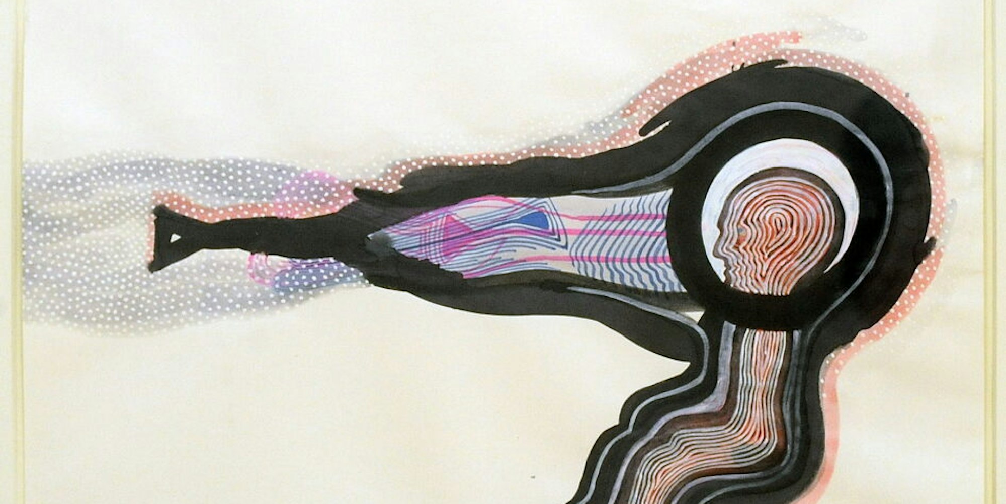 Es gehört zwar nicht zu den größten Arbeiten, die derzeit in Morsbroich gezeigt werden. Vielmehr muss man es vielleicht sogar ein wenig suchen, bis man es an den Wänden der Ausstellung findet. Aber es gehört zweifelsohne zu den Werken, die einen direkten Bezug zur aktuellen Situation haben, denn: Klaukes Aquarell zeigt eine in einem schwarzen Gebilde sitzende, nicht näher definierte Figur, die dem Betrachter wie hoffnungs- und hilflos eingeschlossen vorkommt. Ihr Blick geht zur linken Seite hin durch eine Art Fernrohr hinaus – so als betrachte sie die für sie unerreichbare oder nicht betretbare Welt außerhalb ihres eigenen, engen Kosmos. In Zeiten der Corona-Pandemie mit Kontaktsperren, Abstandsgeboten und Lockdowns wirkt dies natürlich hochaktuell.
