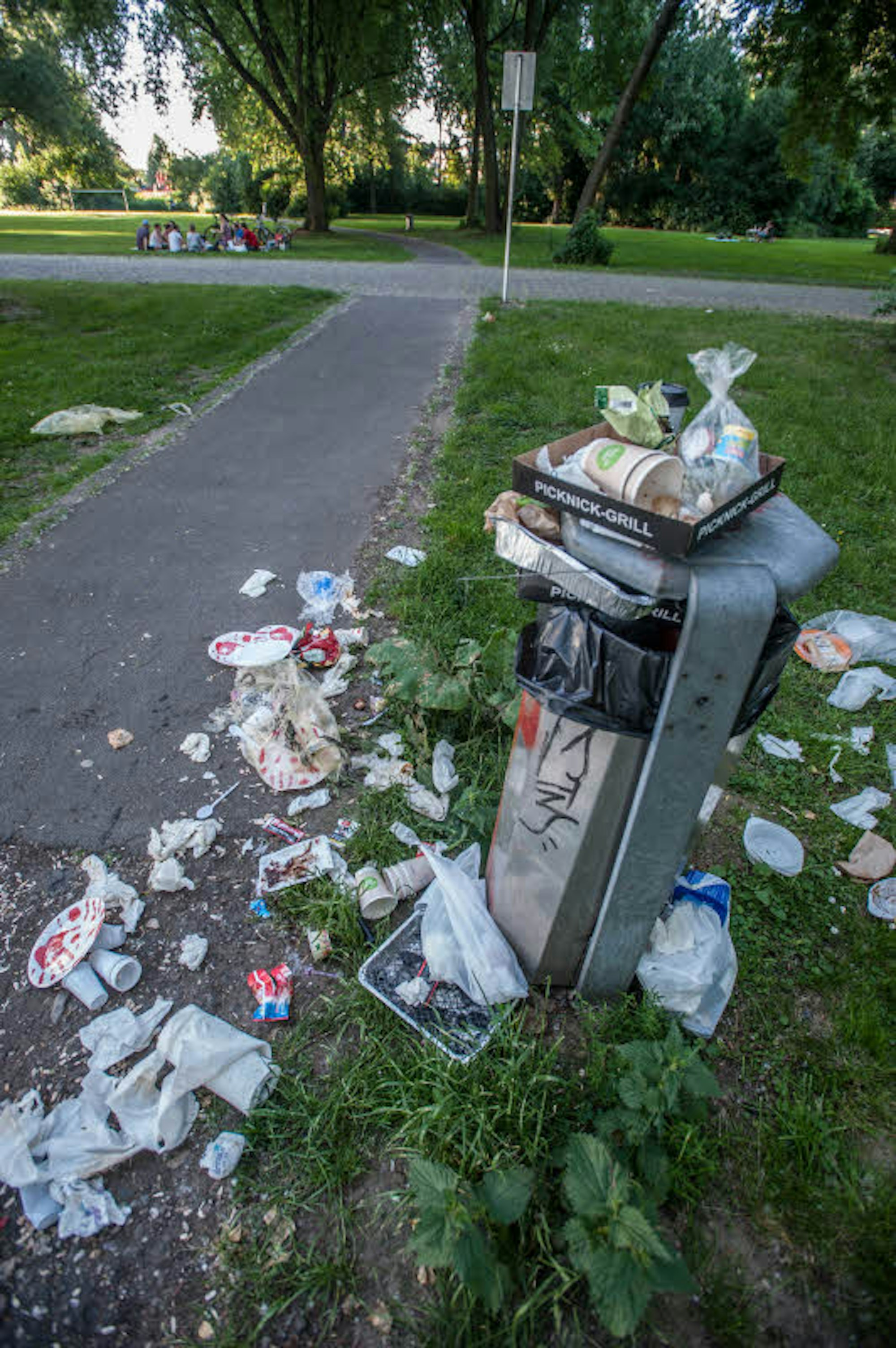 Ina Mosebach freut sich jedenfalls über die Entscheidung des Leverkusener Stadtrats, das Grillen auf öffentlichen Plätzen versuchsweise wieder zu erlauben. Auf jeweils einer abgegrenzten Wiese in den drei Stadtbezirken – in der Hitdorfer Laach am Rheinufer, am nördlichen Wupperufer nahe der Düsseldorfer Straße in Opladen sowie am nordwestlichen Ufer des Ophovener Weihers in Steinbüchel – ist das Grillen bis zum 30. September 2017 erlaubt. Dass die Müllbehälter an heißen Sommertagen wie an diesem Wochenende zeitnah geleert werden, wird über die Müllgebühren von der Allgemeinheit bezahlt.