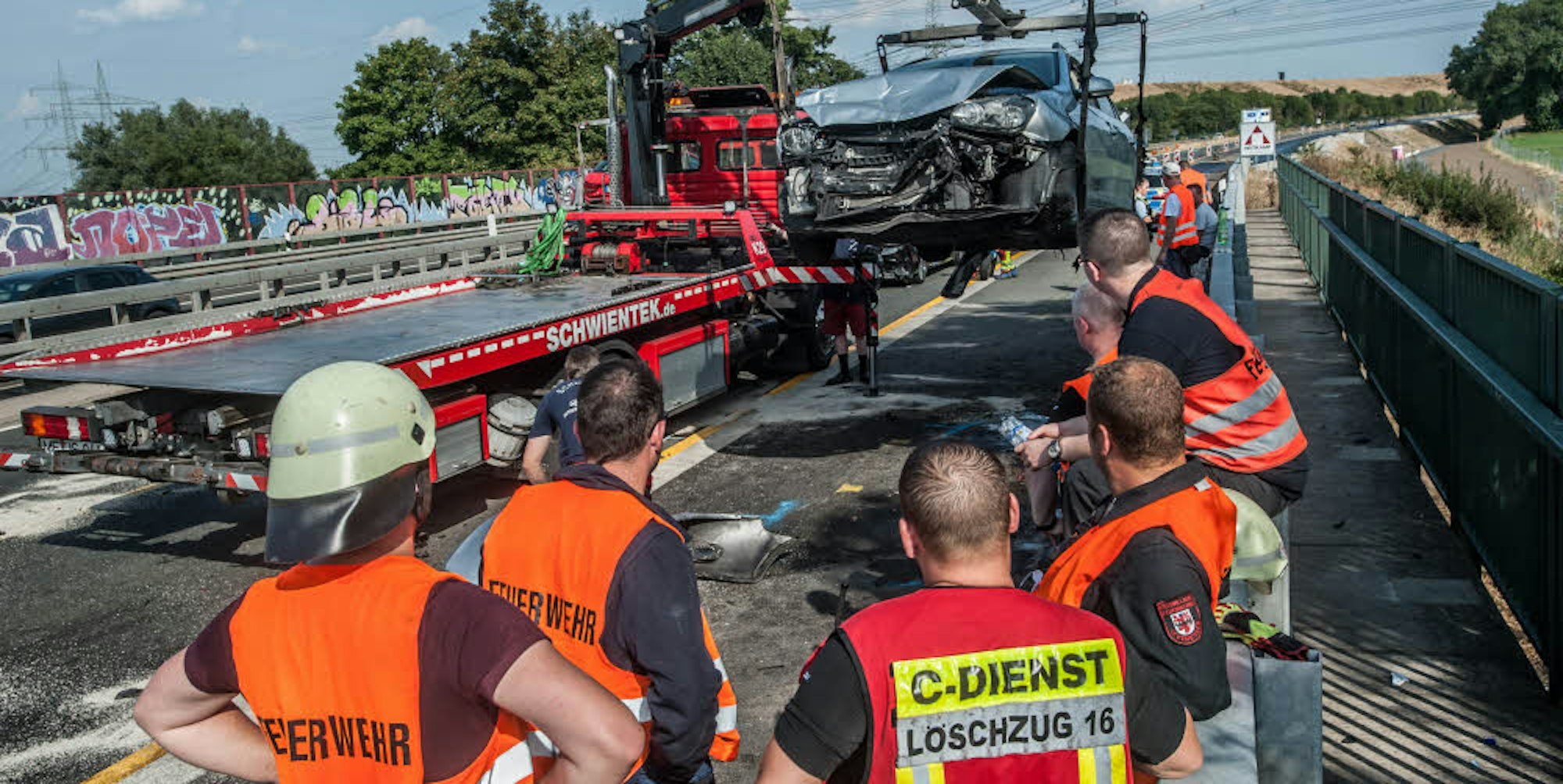 An der Unfallstelle auf der A 59 mussten vier Autos abgeschleppt werden.