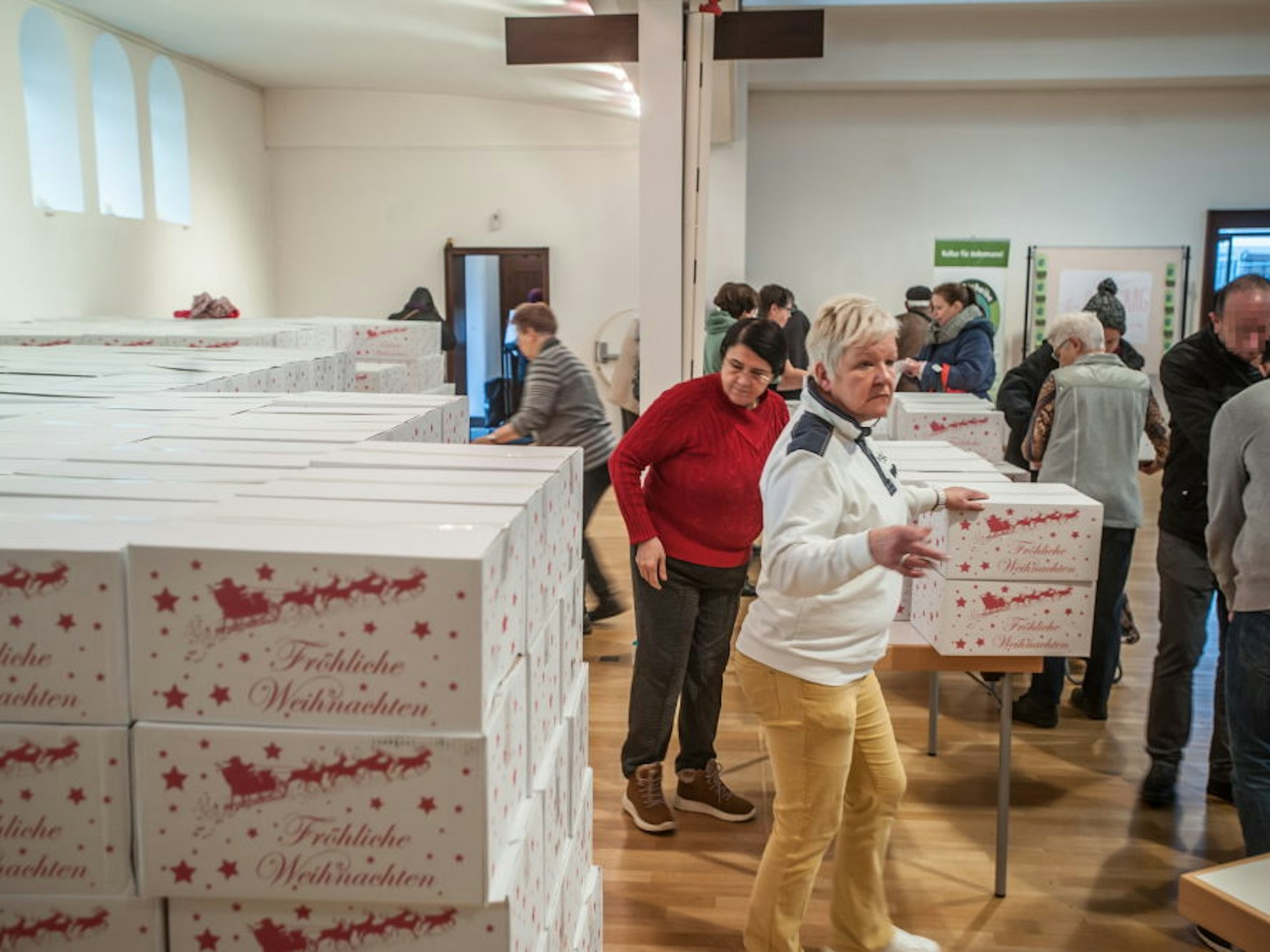 Leverkusen – Woran erkennt man, dass bald Weihnachten ist? Vor der Christuskirche werden Drängelgitter aufgestellt. Die sind aber nicht für die Besucher der drei Gottesdienste an Heiligabend, sondern für eine traditionelle Aktion, die jedes Jahr gemischte Gefühle hervorruft: Im Gotteshaus in Wiesdorf werden 1400 Pakete an Menschen verteilt, die sich keine Geschenke leisten können.