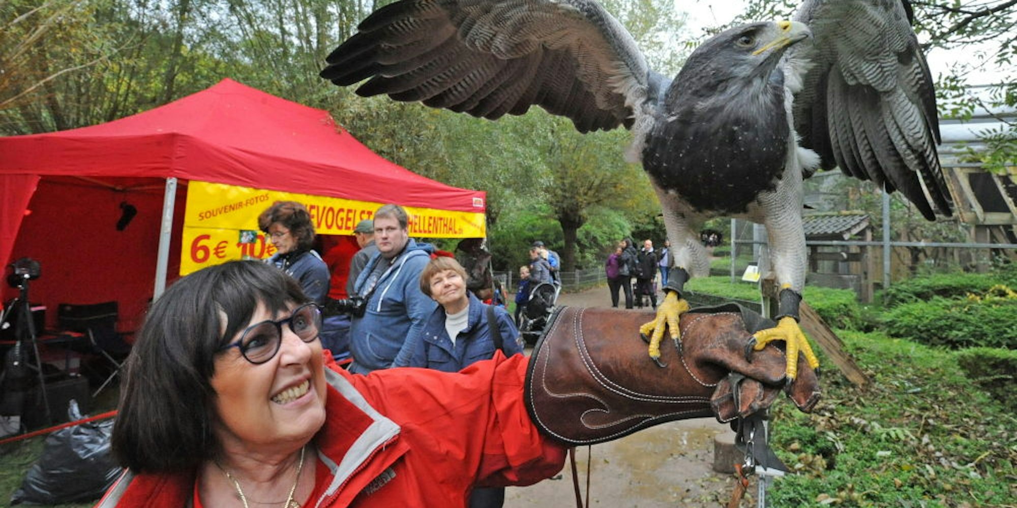 Andenadler Lima landete auf dem Arm von Angelika Stielow, Kinder konnten Ziegen bürsten und Speckmäuse zaubern.