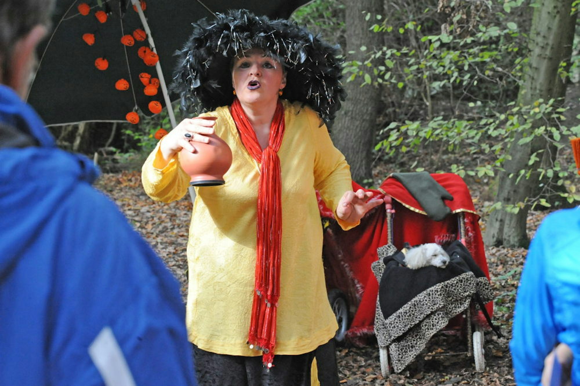 Auch einige Hexen waren zu Besuch im Wildpark. Mit den Worten „Abrakadabra, Simsalabim, in diesem Topf ist jetzt was drin!“, zauberten die Kinder zusammen mit ihrem weißen Pudel Speckmäuse in einen roten Topf. Für die Nicht-Magier gab es jede Menge Snack-Alternativen vom Wurstbrötchen bis zum Eis. Gleich neben den Imbissbuden stand ein Rettungswagen zum Anfassen bereit: Die Sanitäter luden Kinder auch ein, das Fahrzeug zu erkunden oder sich einen Fingerclip ansetzen zu lassen, um den Sauerstoffgehalt ihres Blutes zu messen – natürlich nicht ohne Blaulicht.