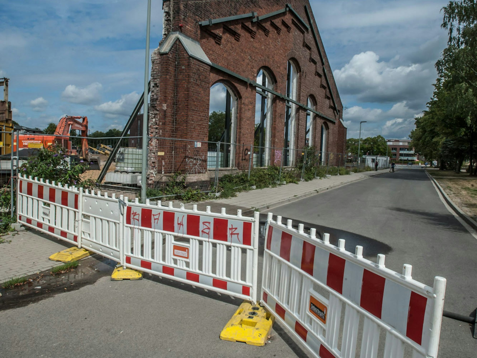 Aufheulende Motoren und quietschende Bremsen, auch schon mal ein illegales Rennen in der Nacht – in der Neuen Bahnstadt Opladen ist dies auf neuen Straßen alles schon vorgekommen. Seit das Wohngebiet in diesem Quartier bezogen ist, bleibt das auch nicht mehr unbemerkt. So wurde der Ruf nach Geschwindigkeitskontrollen und tempomindernden Einbauten laut. Was allerdings nicht so einfach ist, da die Straßen nicht ohne weiteres mit Schwellen oder Barrieren versehen werden können. Geschwindigkeitskontrollen soll es künftig öfter geben. Was sich als allerdings als hoch wirksam erwiesen hat, ist die Sperrung der Fakultätsstraße. Seit September 2018 ist die Straße in Höhe der alten Werkhallen, die bis auf ein Fassadenelement abgerissen werden, mit Absperrbaken verriegelt und kann von beiden Seiten nur als Sackgasse bis zu der Sperrung hin befahren werden. Das hat so sehr für Ruhe gesorgt, dass die Sperrung nun bis zur Öffnung der Technischen Hochschule im Herbst 2020 beibehalten wird. (ger) Foto: Ralf Krieger
