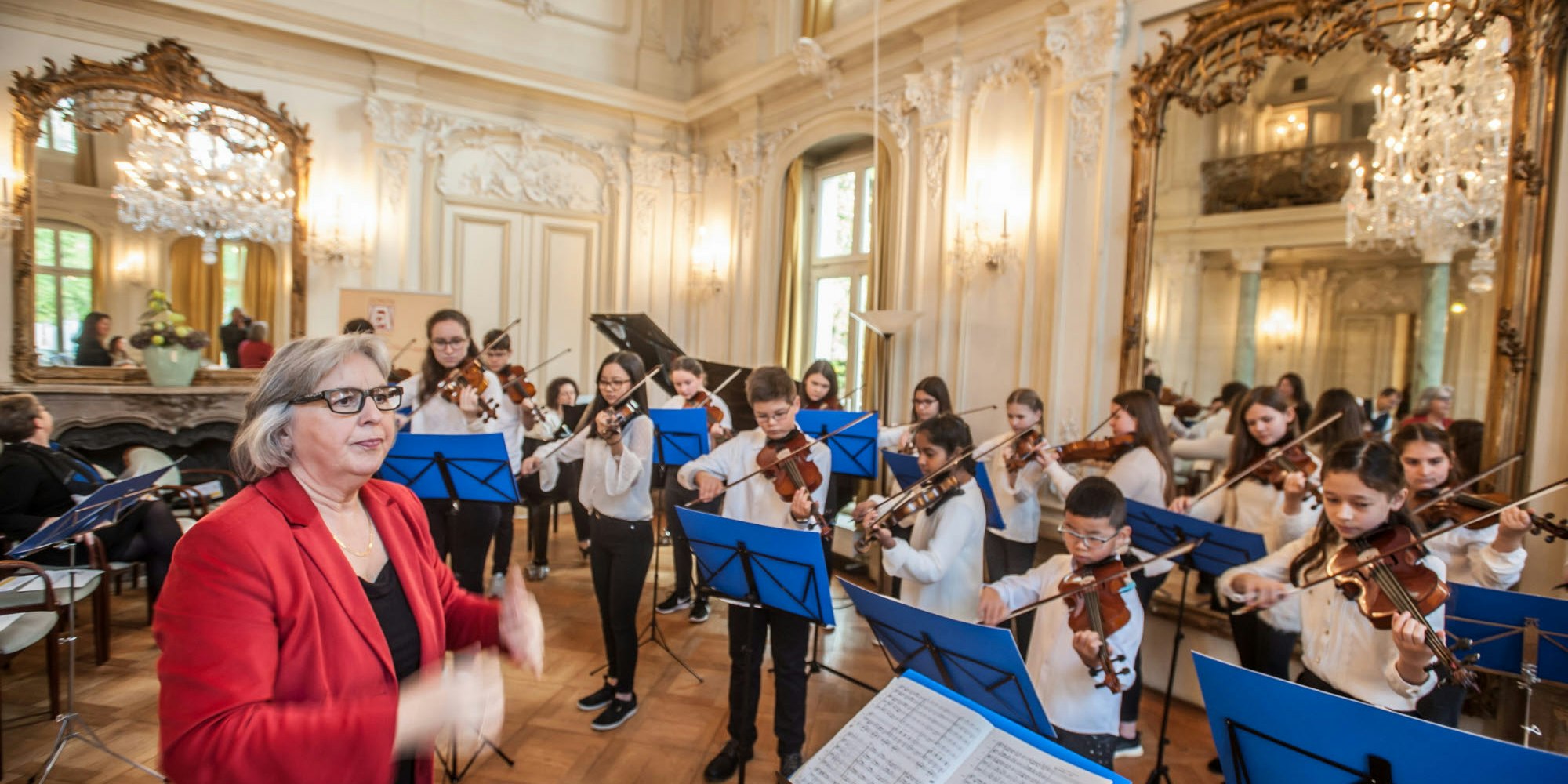 „Ohne den musikalischen Nachwuchs ist Musik in ihrer Spitze nicht möglich“, sagte Moderatorin Claudia Rübben-Laux. Sikai He, das jüngste musikalische Nachwuchstalent des Kammerensembles mit gerade einmal sieben Jahren, begeisterte das Publikum mit einem Solo-Stück von F. J. Gossec auf der Violine. „Sikai spielt erst seit knapp einem Jahr Geige und ist dem Ensemble erst vor kurzem beigetreten“, so Claudia Rübben-Laux. Für den Siebenjährigen war das Konzert im Spiegelsaal des Schlosses eine Premiere: Zum ersten Mal durfte er vor Publikum spielen und erntete dafür mit Abstand den lautesten Applaus.
