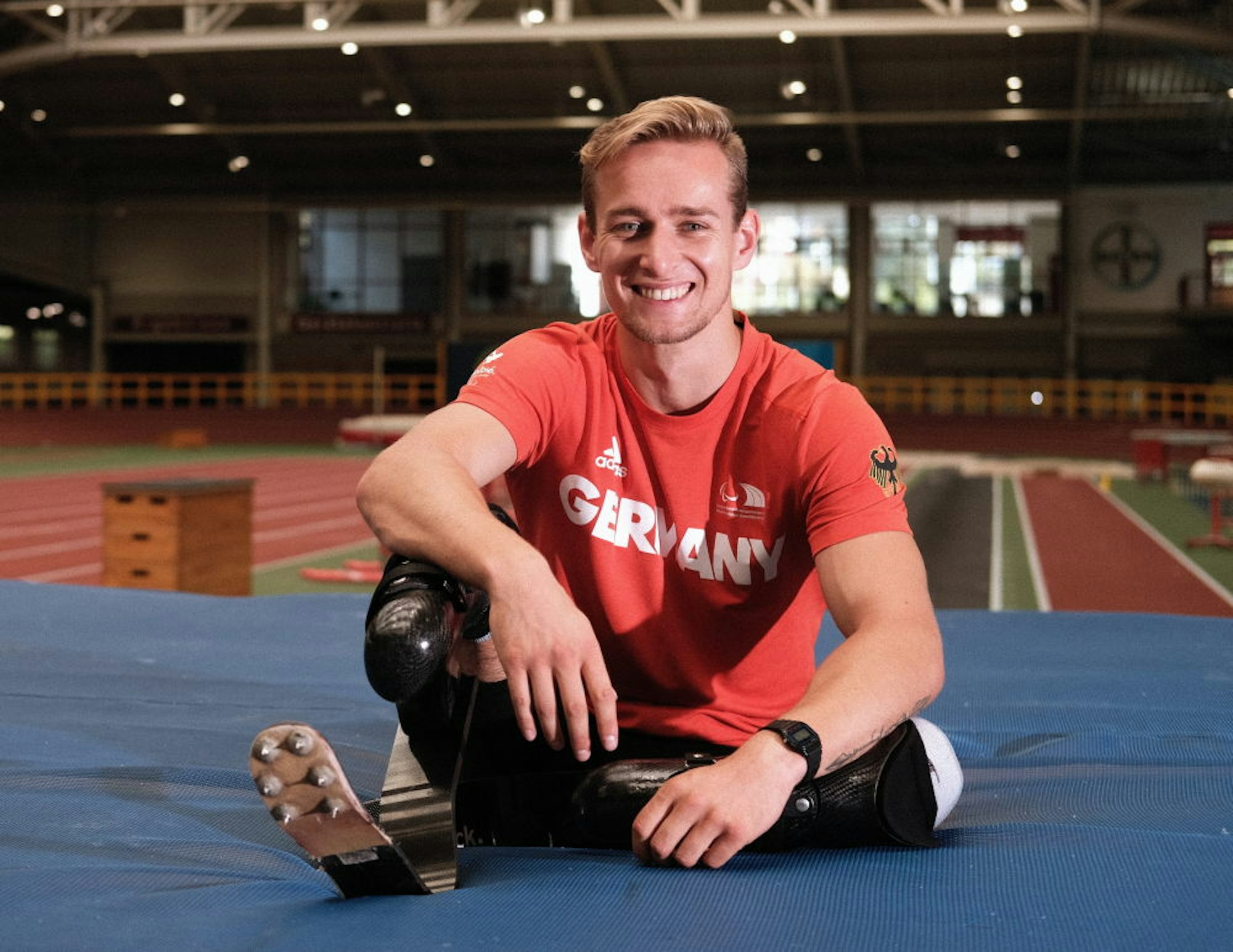 Die Sprinter haben kurz vor ihrem Abflug nach Dubai in der Leverkusener Trainingshalle noch ein ausgeklügeltes Start-Training absolviert. Mit exakter Geschwindigkeitsmessung und Videoaufnahmen durch Biomechaniker des Olympiastützpunktes. Alles hoch professionell. Ganz selbstverständlich gesellte sich Aleixo-Platini Menga dazu, 200-Meter-Spezialist und in Rio 2016 Olympiateilnehmer. „Ich darf aber schon einen zweiten Klotz für den Startblock haben?“, scherzt er, als er direkt nach David Behre dran ist, der mit seinen beiden Prothesen nur einen Klotz benutzt. „Ist das hier eigentlich Spitzen- oder Reha-Sport“, unkt ein anderer, in Anspielung auf Behres (33) und Mengas (32) Alter. So also funktioniert Inklusion.