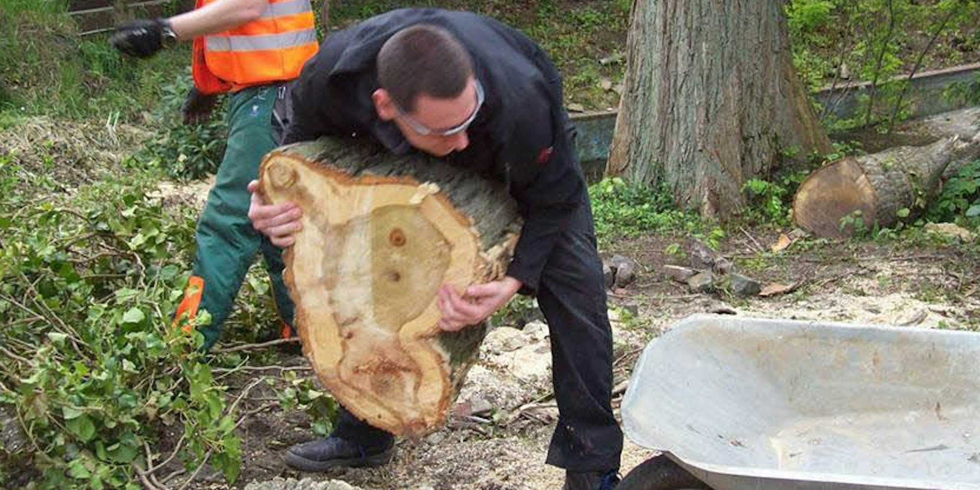 Aufräumarbeiten nach dem Sturm: Frank Haase, hinten, packt mit an.