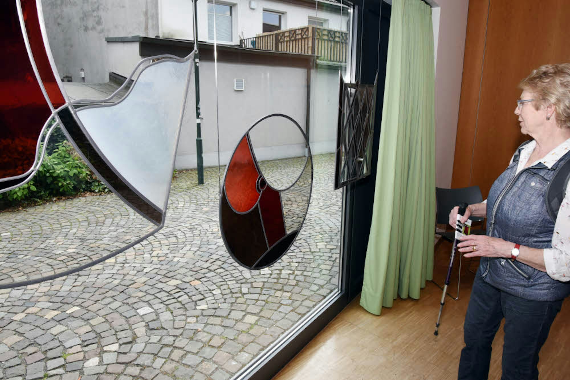 Die aus Kürten stammende Künstlerin Maria Schätzmüller-Lukas zeigt ihre etwa 25 Objekte im Pfarrheim sowie der katholischen Kirche: fragile und klare Glasimpressionen, sind im Materialmix mit Holz als durchsichtige Objekte zu bewundern. Stühle etwa, deren Sitzflächen gläserne Details aufweisen, sind zu einem Kreis aufgestellt. Auch einfaches Fensterglas wird von der Künstlerin zum geschichteten Objekt, und beschreibt die Klarheit und Schärfe des Materials.