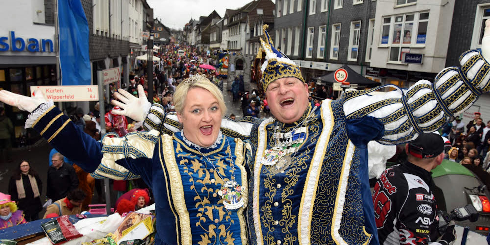 Prinz Ralf II und Prinzessin Nadine warfen in Wipperfürth 2019 Kamelle, was das Zeug hält.