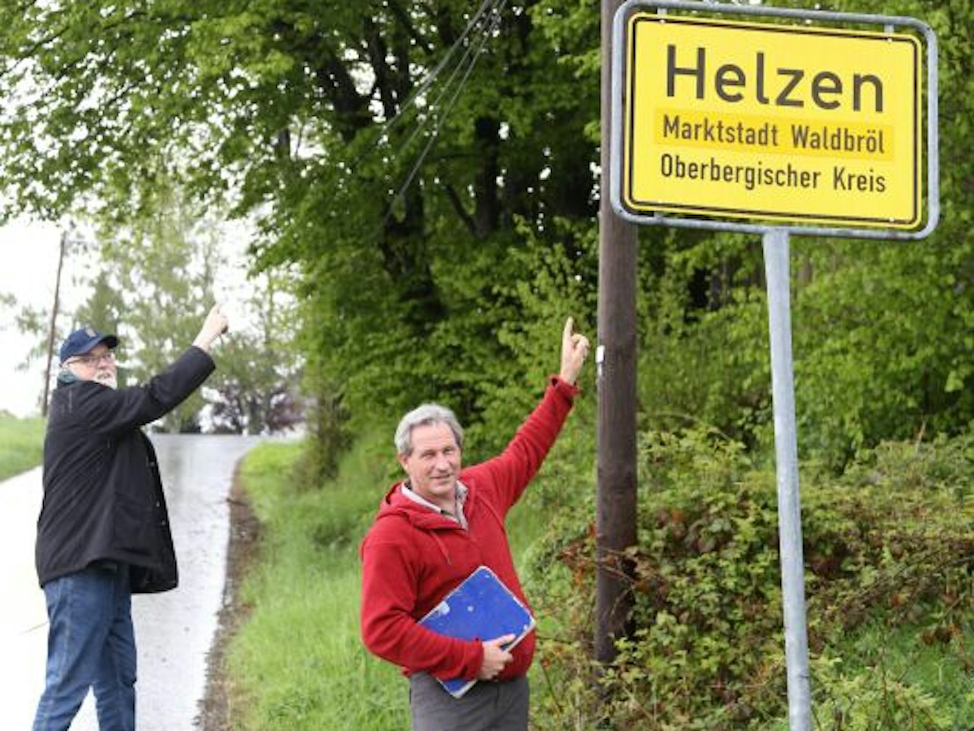Helzen – Reiner Barth steht im Grünen. Er streckt den Rücken, den rechten Arm, den Zeigefinger und deutet nach oben, mitten hinein in einen Baum: In Höhe des Ortsschildes von Waldbröl-Helzen verschwinden unterarmdicke Kabel zwischen den Blättern und Zweigen. „Internet“, sagt Barth knapp. Tatsächlich hat die Deutsche Telekom das schnelle Breitband nach Helzen gebracht und die Glasfaserleitungen dafür überirdisch geführt. „Kommt ein Sturm, kippt dann ein Baum, ist die Leitung tot – und das für Wochen“, sagt Barth. „Das kennen wir schon zur Genüge vom Telefon.“