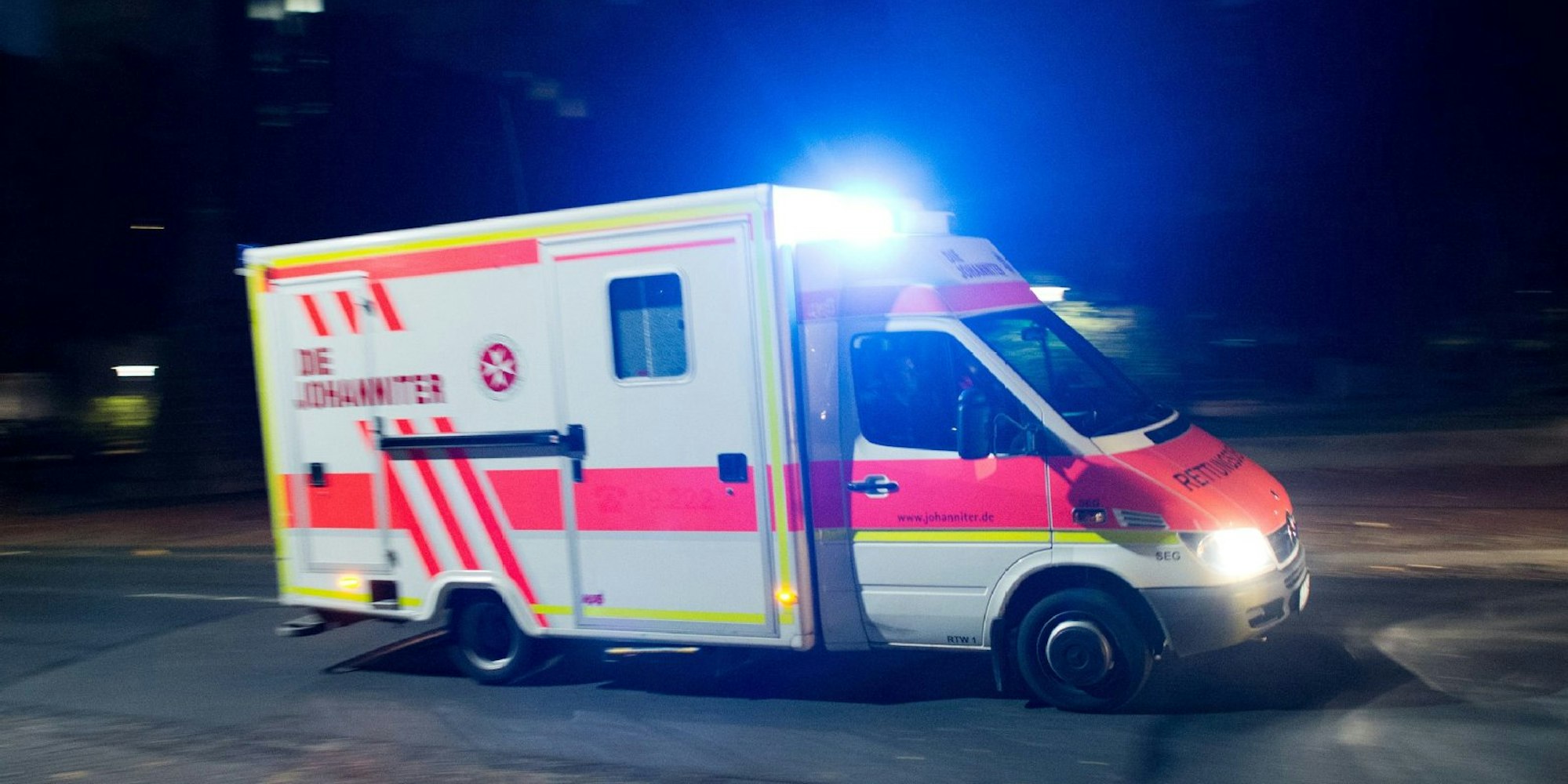 Ein Rettungswagen nachts im Einsatz (Symbolbild)