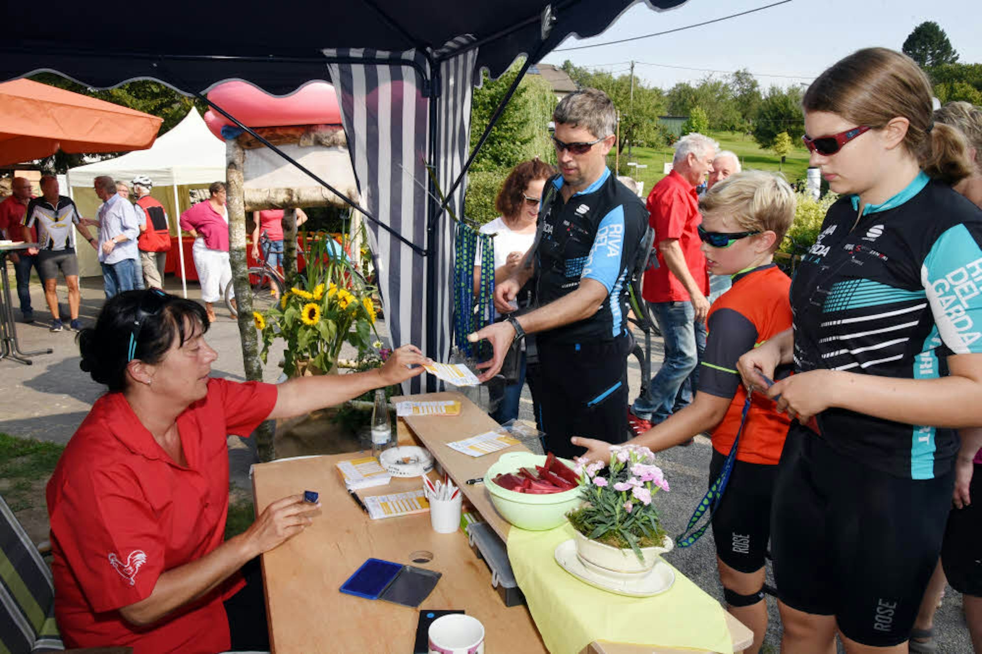 Um 9 Uhr waren die 20 ersten Radler schon durch, berichtet Martina Müller, die zusammen mit Mila Braatz die Stempel verteilte. Nach dem offiziellen Start ging es dann Schlag auf Schlag. Dass sich die Anzahl der Räder mit Elektromotor nochmals erhöht hat, war nicht nur ihr Eindruck. Normale Drahtesel musste man in der Masse buchstäblich suchen.