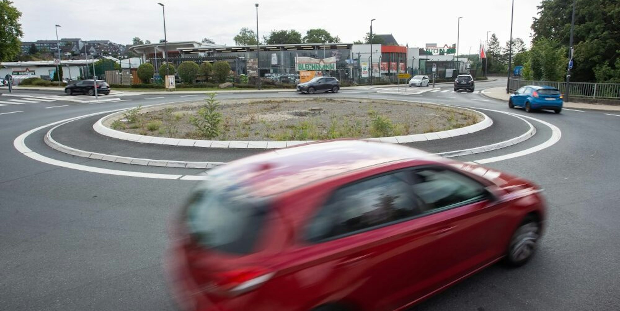 Wipperfürth – Kahl und öde: Einen traurigen Anblick bietet der sogenannte „Blechmann-Kreisel“. Der neu geschaffene Kreisverkehr wurde Anfang Juni 2021 für den Verkehr freigegeben.