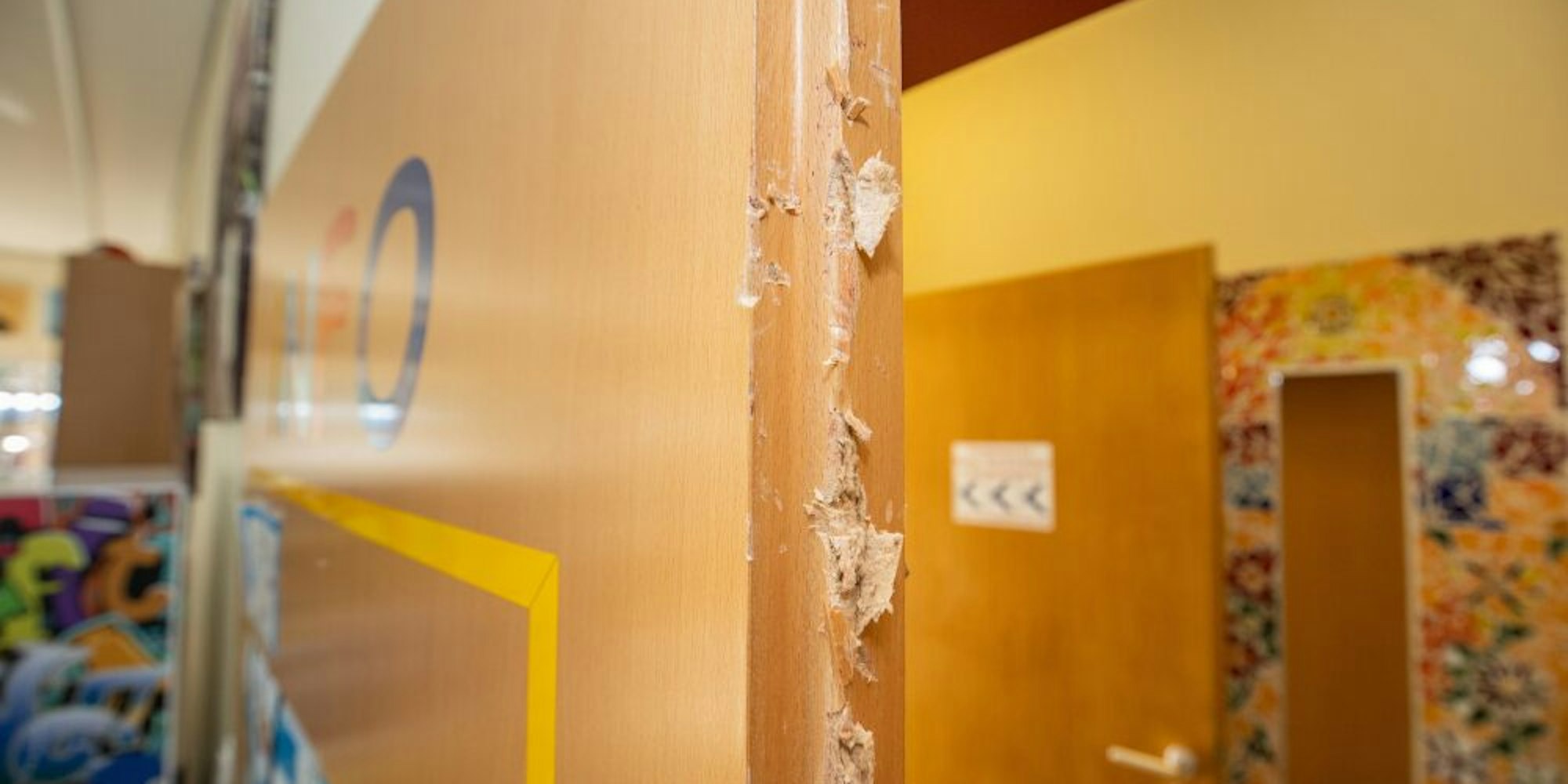 Einer wurde beim Verlassen des Gebäudes gefilmt. Der oder die Täter drangen durch ein Kellerfenster in das Gebäude ein, von da zieht sich eine Spur der Verwüstung durch das Haus. Türen und Schränke im großen Saal wurden aufgebrochen, Bewegungsmelder von der Decke geschlagen. In den Räumen des Förderkreises Kinder und Kultur (KKK) sind die Schäden am größten. Das Büro wurde verwüstet, eine Scheibe davor zertrümmert, die Tür zum Sanitärraum regelrecht zerfetzt.