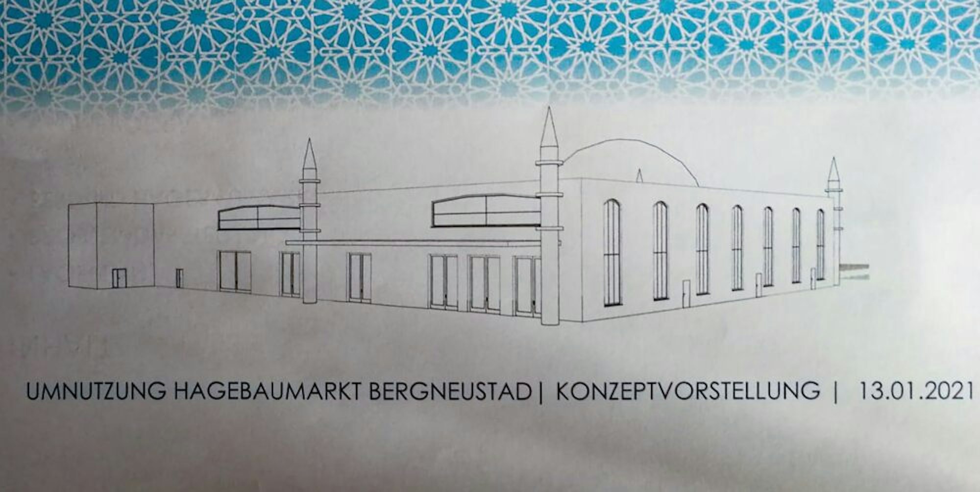 Skizze der Moschee: So könnte das Bauwerk irgendwann aussehen. Zunächst muss aber eine Einigung in der Standortfrage erzielt werden.