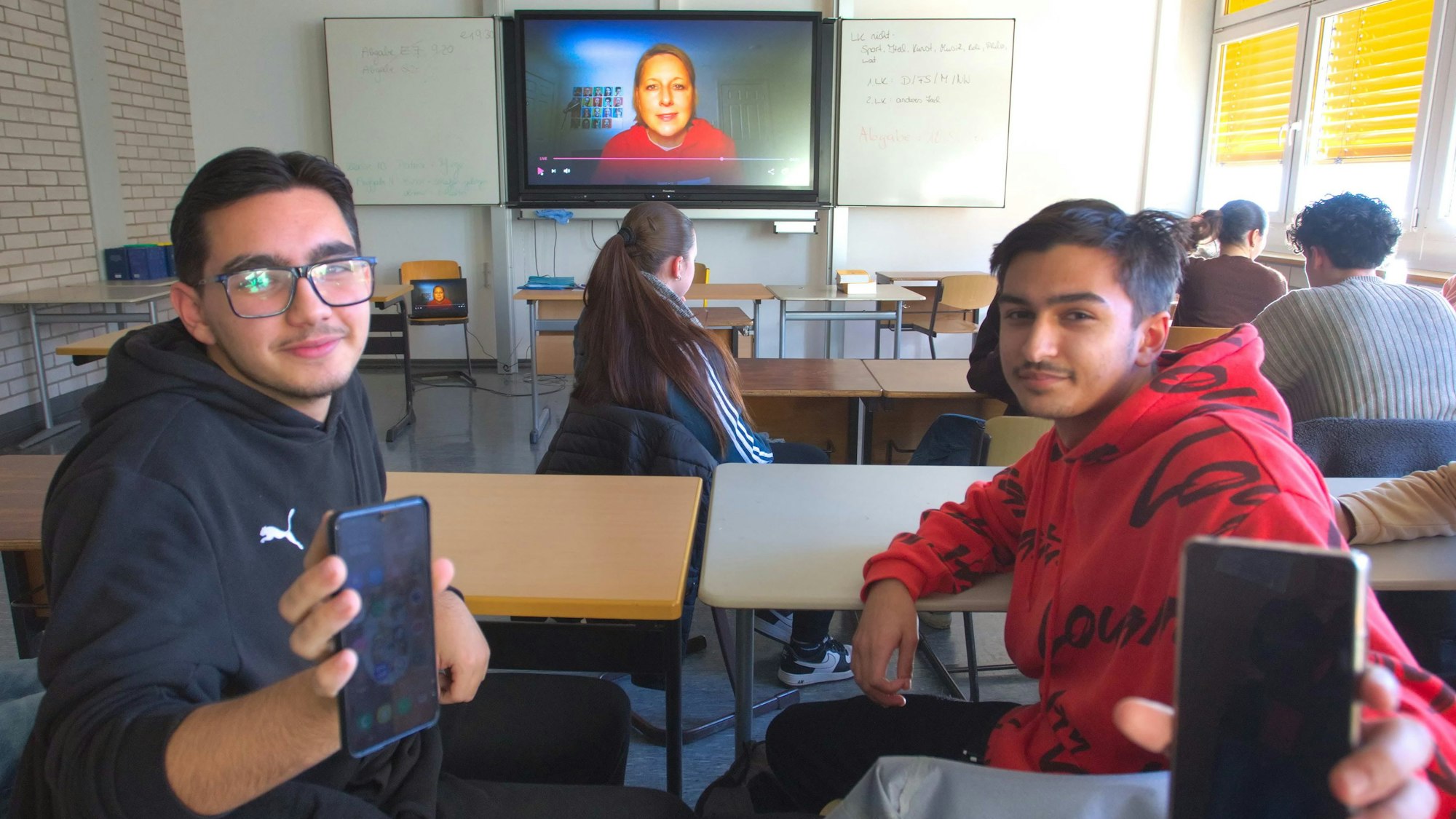 Fragen an die USA-Korrespondentin stellten auch (v.l.) Kaan Yildirim und Jamil Wisniewski per WhatsApp.
