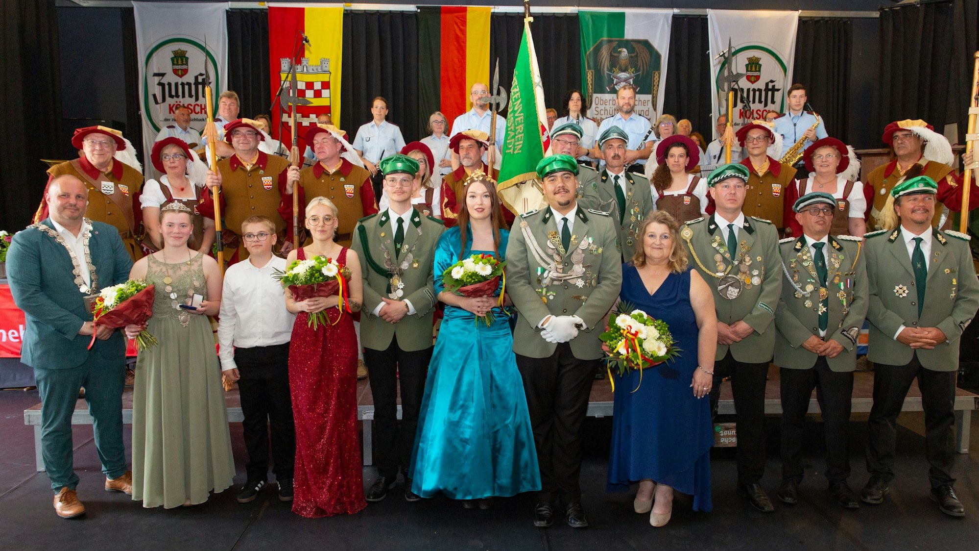 Während sich die Organisatoren dort mehr Besucher gewünscht hätten, war der Krawinkelsaal am Montag zur feierlichen Krönung der neuen Majestäten wieder brechend voll. Neben einer Abordnung des Oberbergischen Schützenbundes waren Gastvereine aus Pernze-Wiedenest und von der Hohen Belmicke mit großer Abordnung dabei. Bonness zieht ein positives Fazit: „Wir sind insgesamt sehr zufrieden mit dem Schützenfest.“