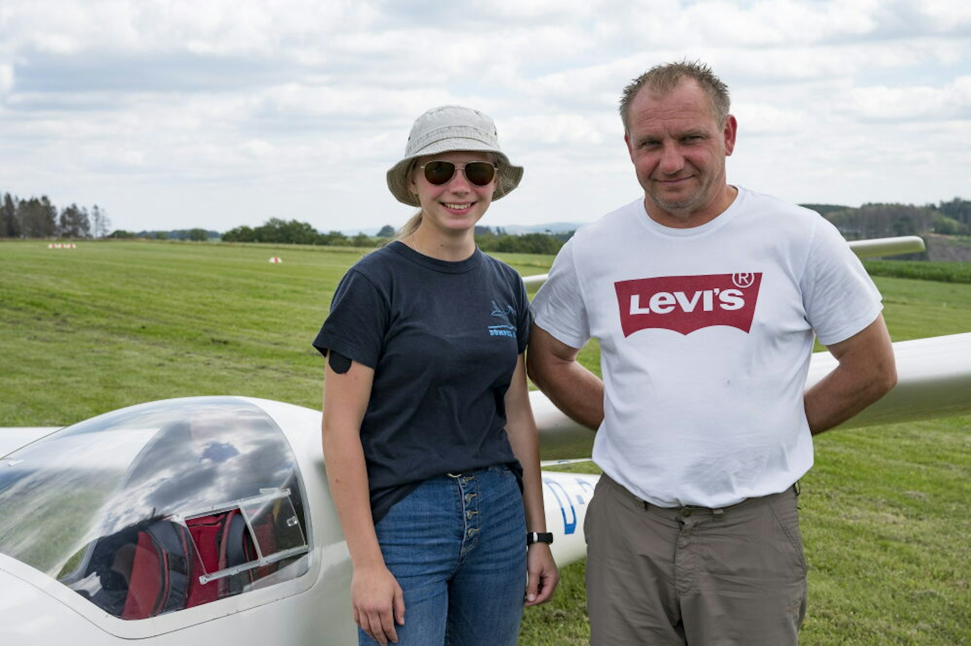Carolin Fiedler (mit Vater Swen) hat bereits 20 Alleinflüge absolviert.