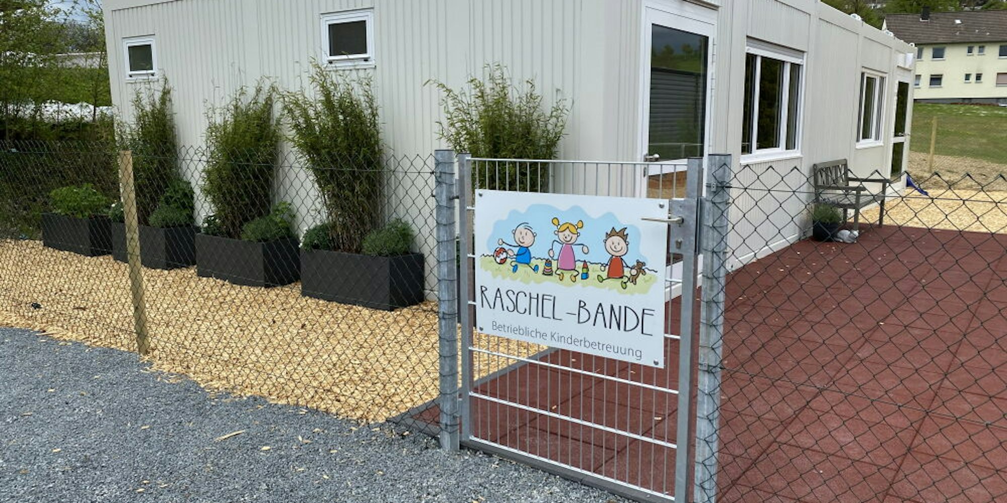Bis das eigentliche Gebäude der Kinderbetreuung fertig ist, bewohnt die „Raschel-Bande“ ein Provisorium aus Containern, die kindgerecht ausgestattet wurden. Der Außenbereich bietet den Kindern Platz zum Spielen an der frischen Luft.
