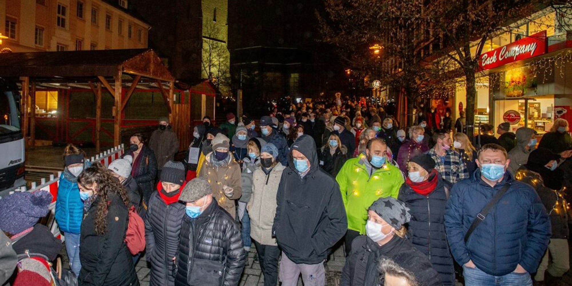 Wie schon 14 Tage zuvor war es auch an diesem Montag im Bereich der Kampgasse zu Beginn und zum Ende des Umzugs zu einem Gedränge kommen, mittendrin spielte eine Blaskapelle. Bis zu 50 Prozent der Teilnehmer trugen keine Maske. Und als die Polizei die Demonstranten aufforderte, den Platz zu verlassen, gab es ein Pfeifkonzert.
