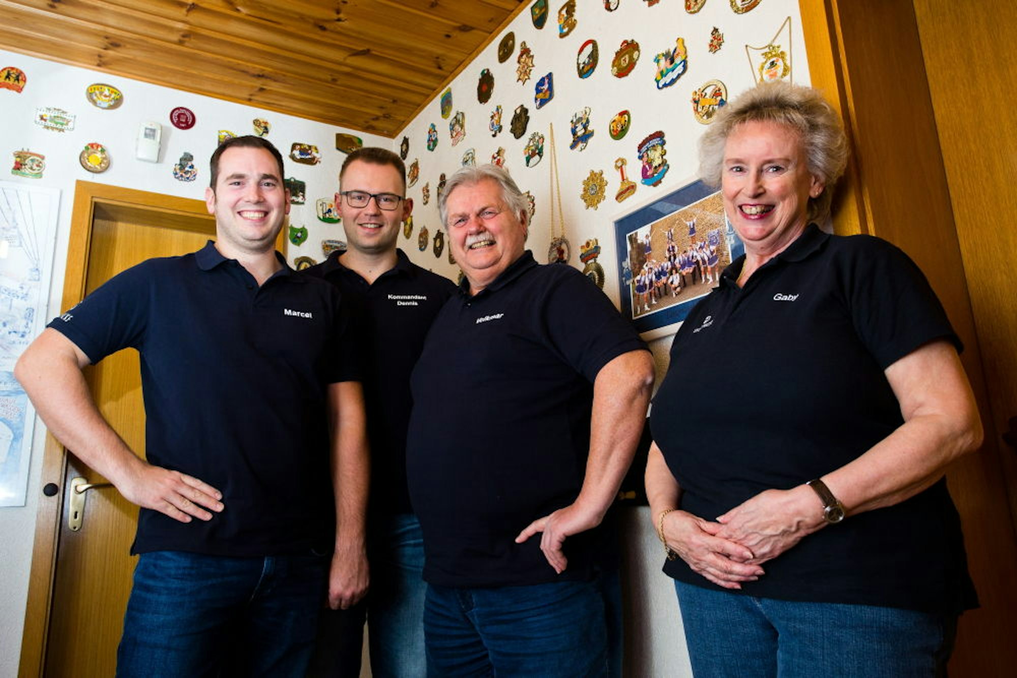Beim Interview: Die Kommandanten Marcel Winkler, Dennis Gründler und die Organisatoren Volker und Gaby Winkler.