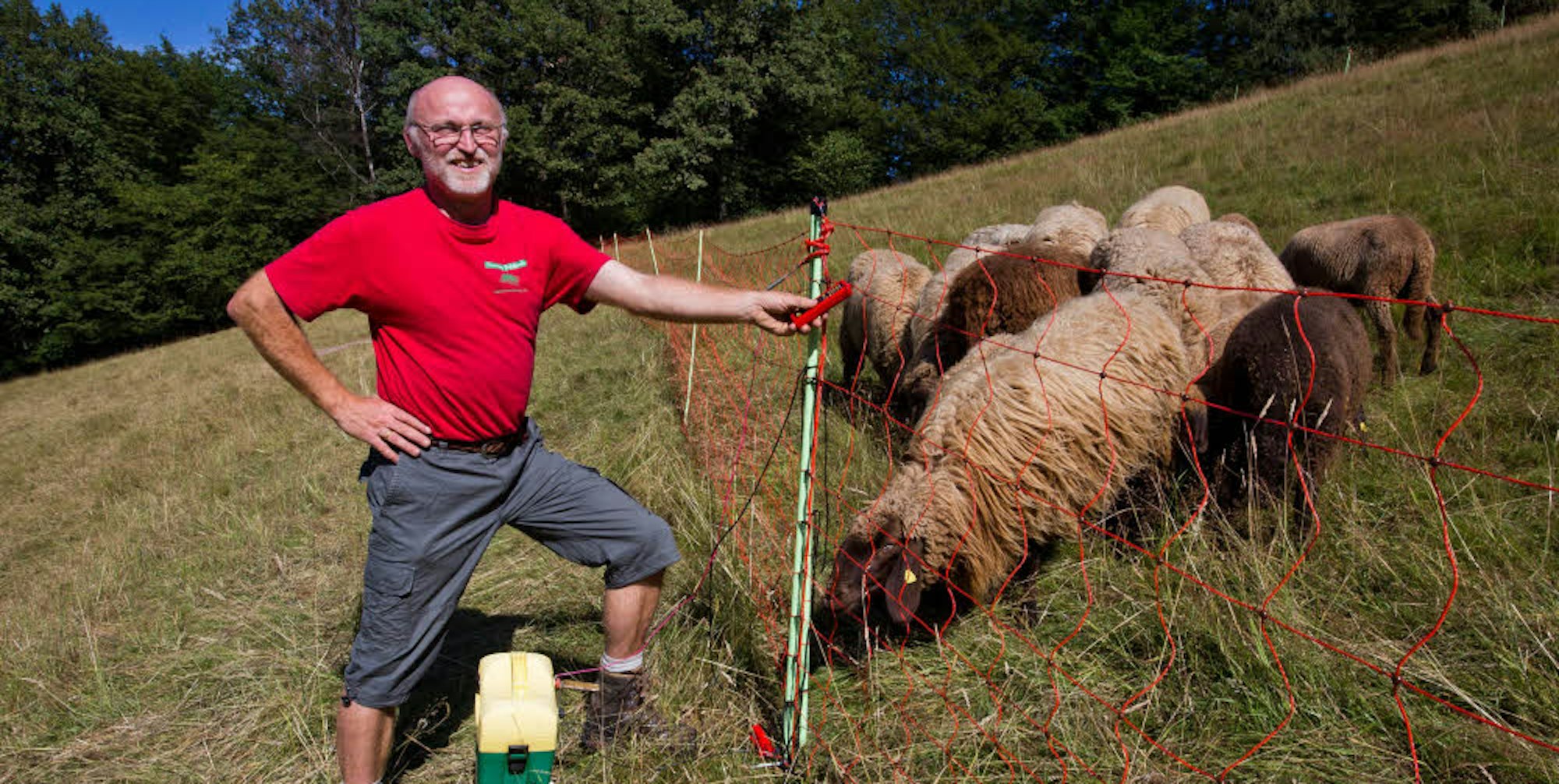 Mit diesen Zäunen möchte Bio-Bauer Peter Schmidt seine Bergschafe, eine heute seltene Rasse, vor dem Wolf schützen.