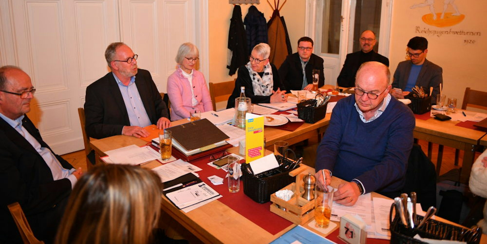 Thomas Hein (l.) hat sich am Abend bei der FDP vorgestellt. Am Ende stimmte die Mehrheit der anwesenden Mitglieder dafür, keinen Kandidaten bei der Bürgermeisterwahl zu unterstützen.