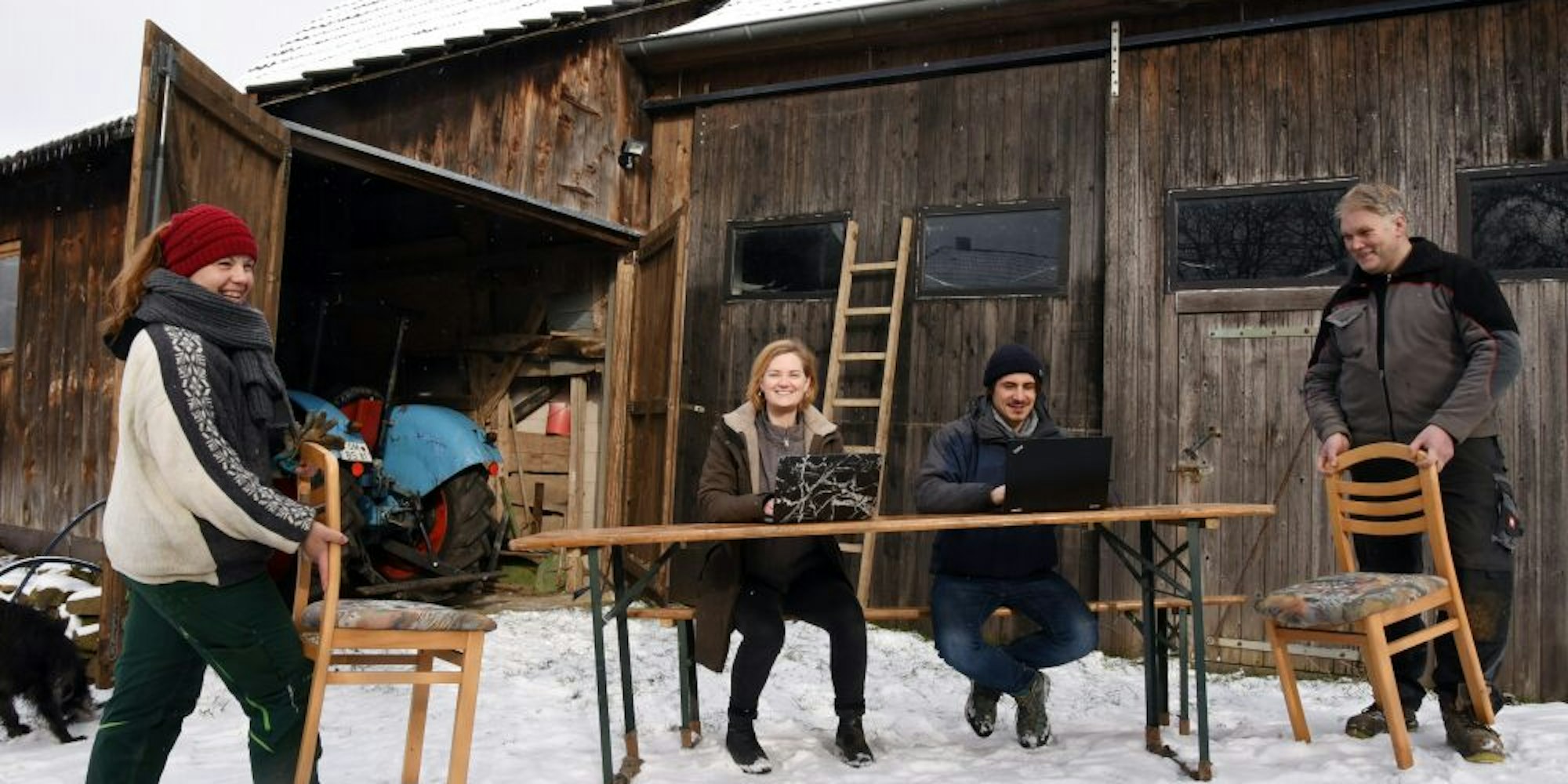 Laptop vor dem Stall: Mona Beckmanns und Lucas Danisch.
