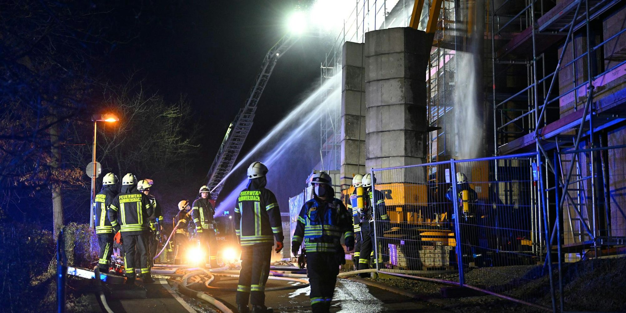 Als die Einsatzkräfte vor Ort ankamen, habe der Dachstuhl des Rohbaus bereits komplett in Flammen gestanden, sagte Stadtbrandinspektor Thomas Wurm, der den Einsatz auf dem Bernberg leitete.