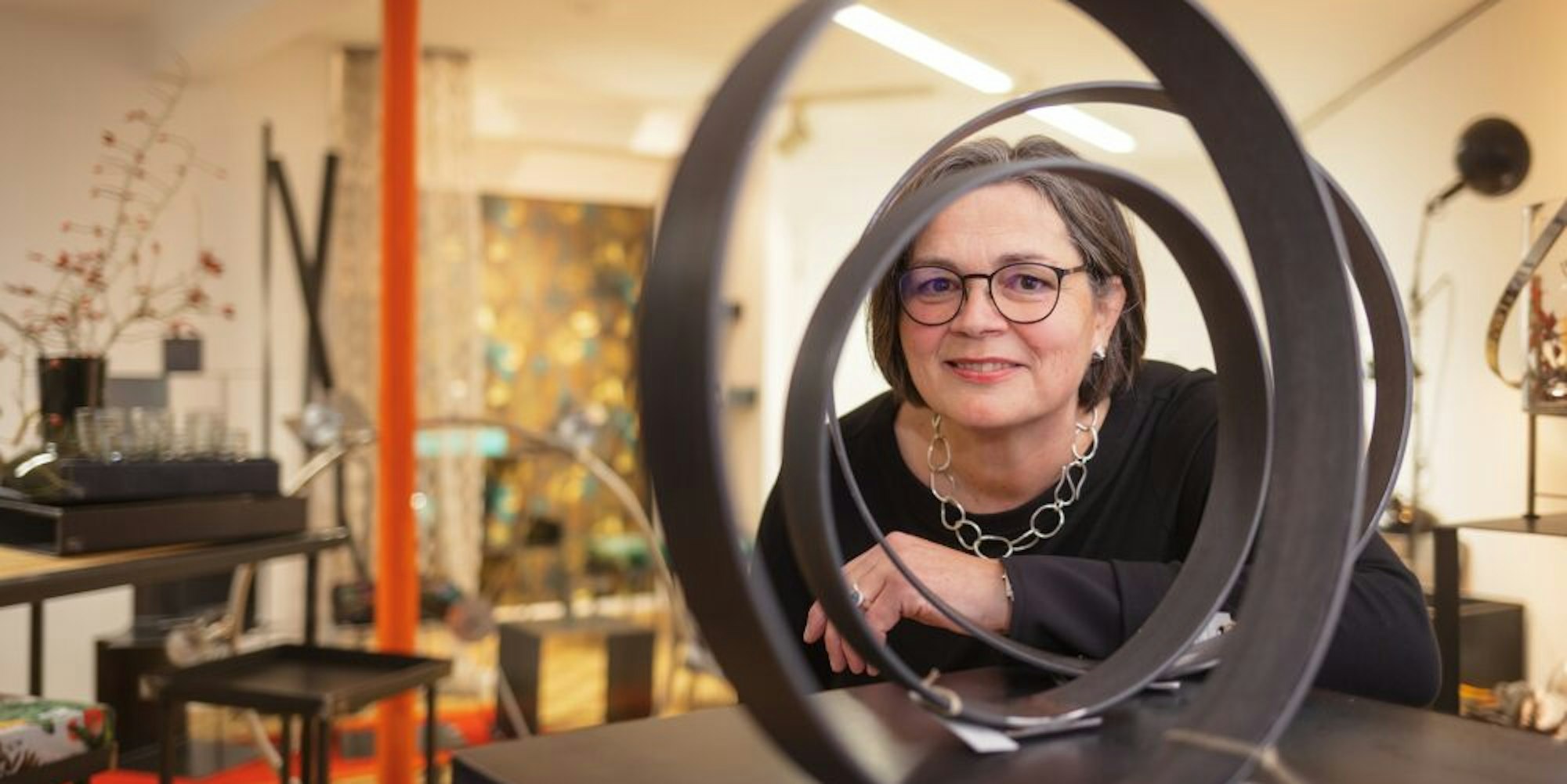 Die von ihr gestalteten Werkstücke zum Wohnen aus Metall zeigt Sabine Bockemühl jetzt in Wiehl.