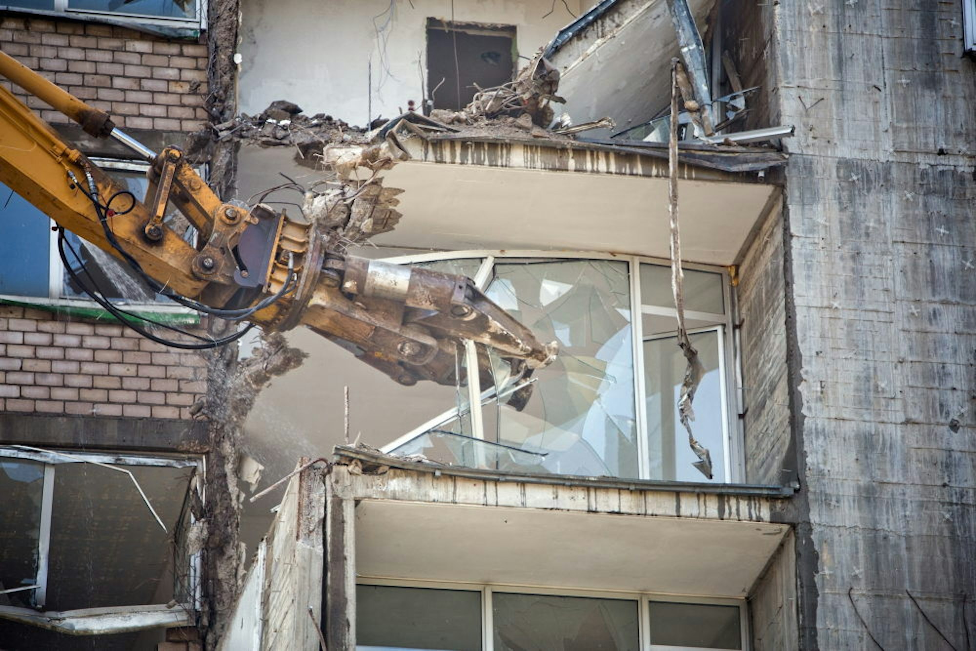 Zurzeit frisst sich die Abbruchschere durch das siebte Obergeschoss des Waldbröler Merkur-Komplexes.