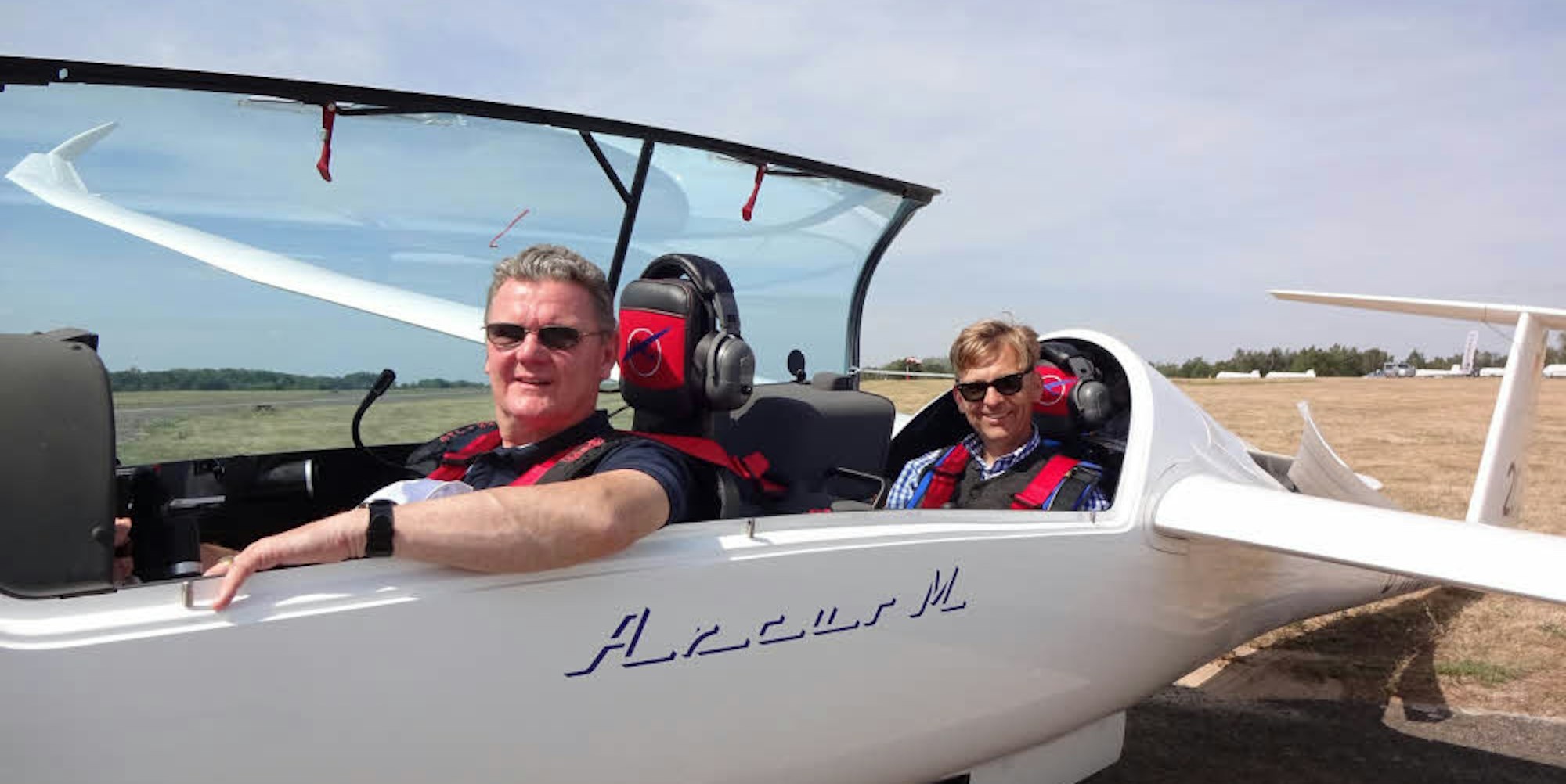 Stefan Klett und der amtierende Segelflugweltmeister Tilo Holighaus kurz vor dem Start.