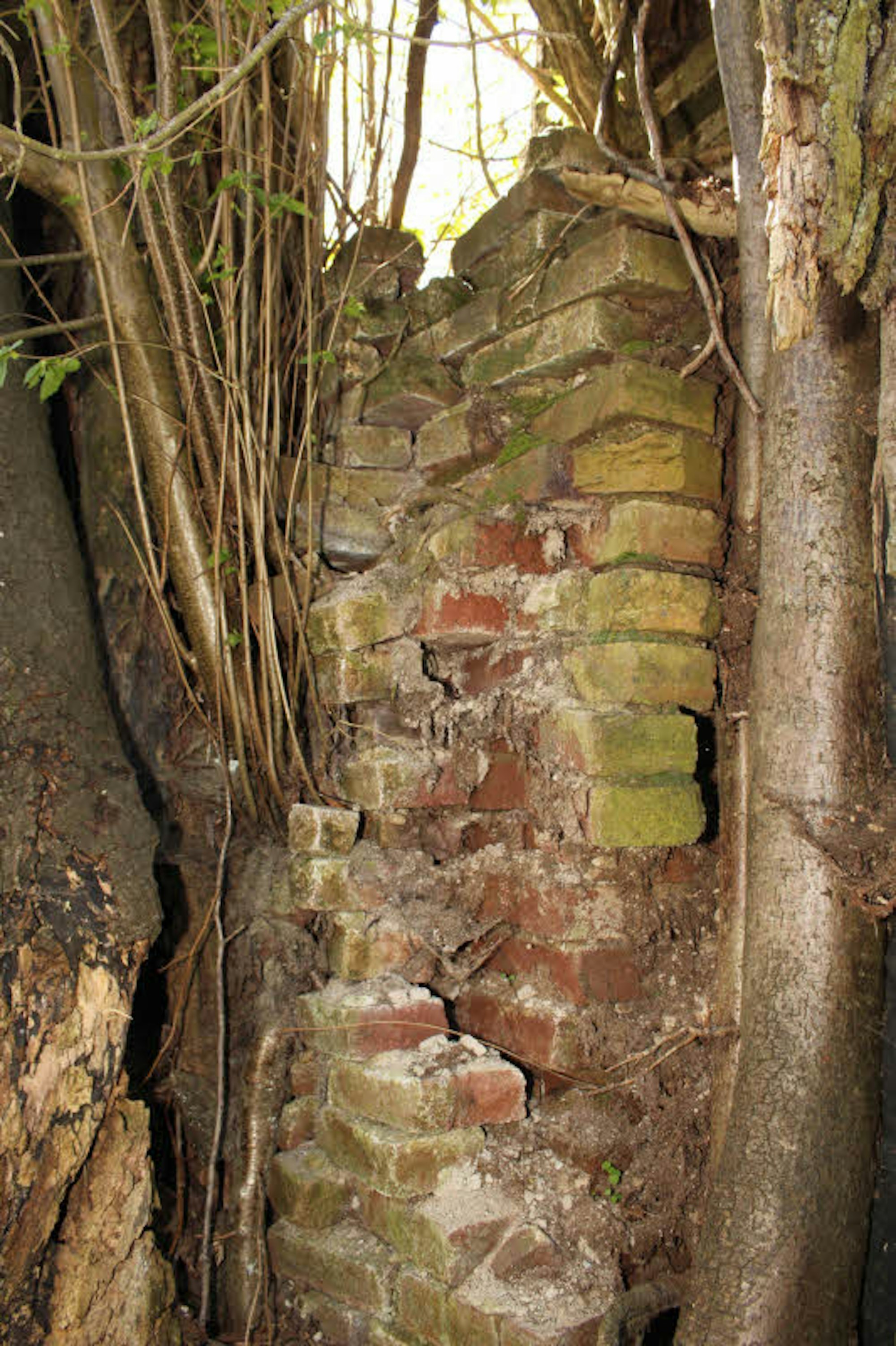 Der Baum ist aber schon lange marode und mit Ziegelsteinen ausgemauert, um ihn zu stützen.