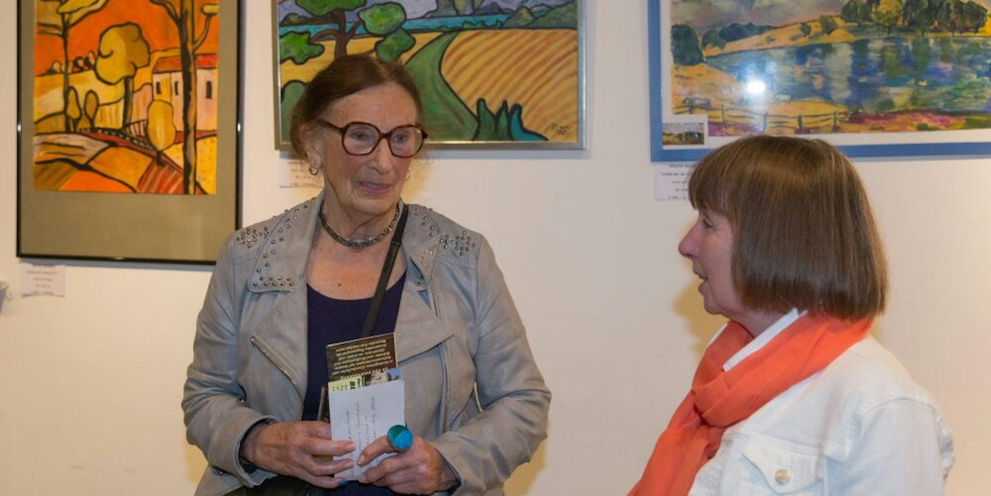 Renate Seinsch (l.) und Katja Gerlach von der Engelskirchener Kulturinitiative Engels-Art bei der Ausstellungseröffnung im Alten Baumwolllager.