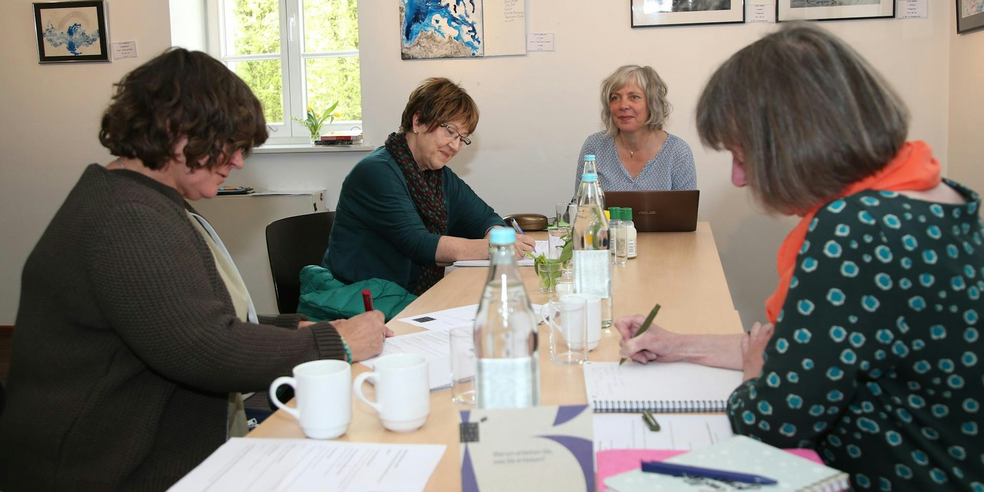 Engelskirchen – „Warum arbeiten Sie, was Sie arbeiten?“, ist die eigentlich einfache Ausgangsfrage an diesem Morgen, mit der sich Katja, Brigitte und Susann und Ulrike beschäftigen wollen. Und genau diese Frage wird schon nach kurzer Zeit sehr tiefgründig diskutiert. Im alten Baumwolllager in Engelskirchen haben sich die vier Frauen versammelt, um einen Tag lang gemeinsam kreativ zu sein.