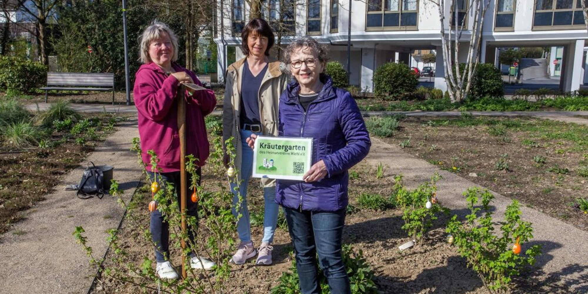 Freuen sich auf Kräuterfreunde: Elke Zakaria (vorne) und ihre Mitstreiterinnen Ute Löllgen (l.) und Barbara Lück.