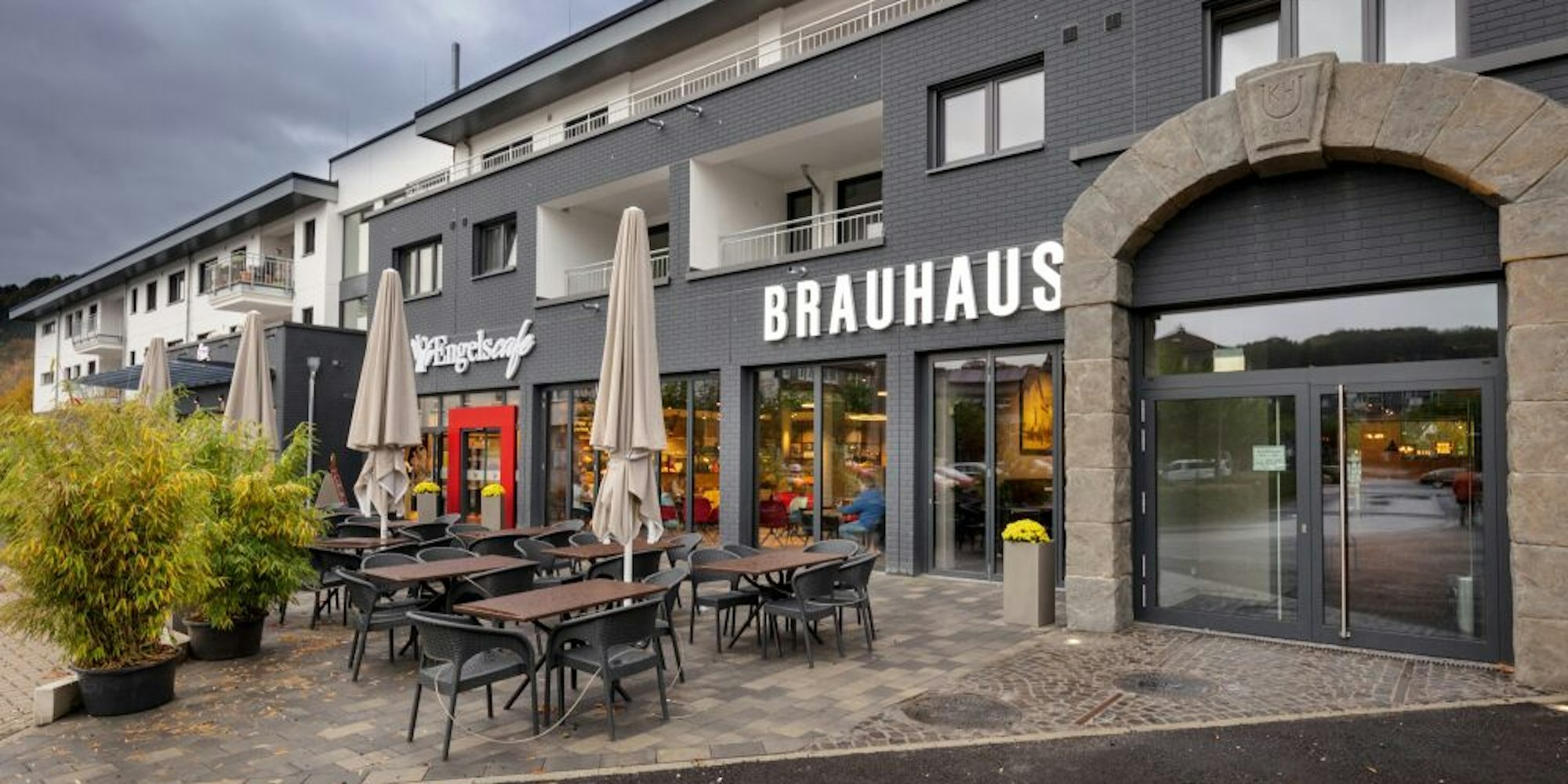 Am Engelskirchener Bahnhof ist das alte Gebäude einem Neubau, der ein Café und ein Brauhaus beherbergt, gewichen.
