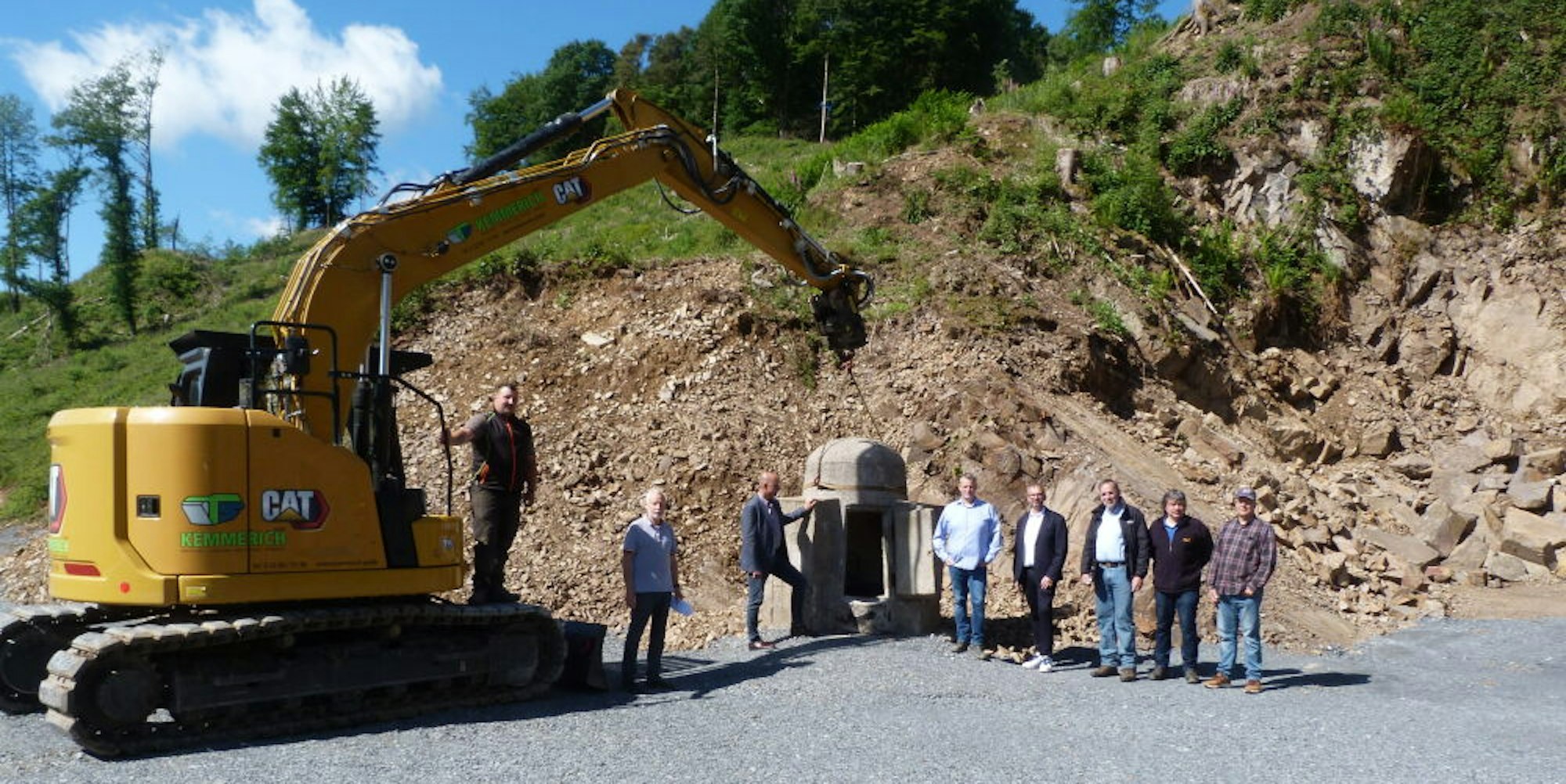 Der Steinbruch mit Mini-Bunker und den Beteiligten.