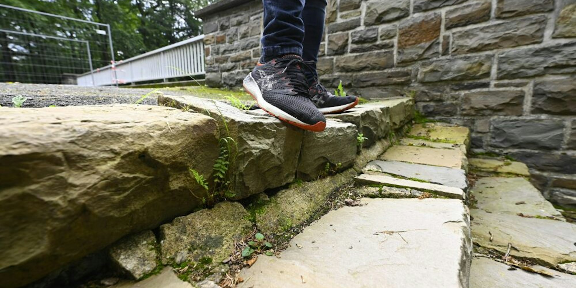 Wie berichtet, wurde die Anlage von der Stadt weitläufig gesperrt, nachdem dort gravierende Mängel festgestellt worden waren. Dazu gehören auch lose Stufen oder Bruchsteinsäulen, aus denen sich bereits die Steine lösen.