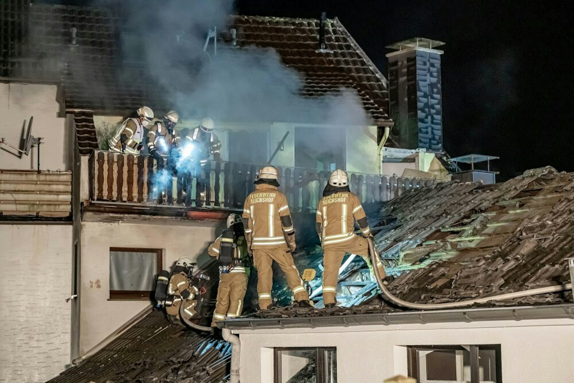 Mit insgesamt vier C-Rohren hat die Feuerwehr die Flammen bekämpft: Zwei Angriffstrupps löschten von außen, ein Trupp unter schwerem Atemschutz durch das Treppenhaus von innen, sowie ein weiterer von einem Balkon aus. Damit war das Gröbste geschafft, doch die Nachlöscharbeiten am Dachstuhl waren sehr zeitintensiv. So sei die Dachhaut vom Korb der Bergneustädter Drehleiter aus geöffnet worden, um verborgene Glutnester zu entdecken. Die Reichshofstraße und die Blockhausstraße waren für mehrere Stunden voll gesperrt.