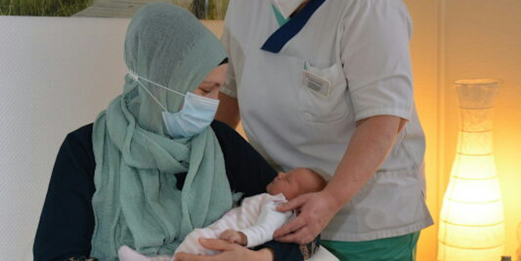 Unaufschiebbar: Auf der Wöchnerinnenstation geht für Evelyn Christian (r.) und ihre Kollegen die Arbeit trotz der Pandemie weiter. Die kleine Leyla, hier im Arm ihrer Mutter Fatima Özbag, bekam von den Corona-Maßnahmen natürlich nichts mit.