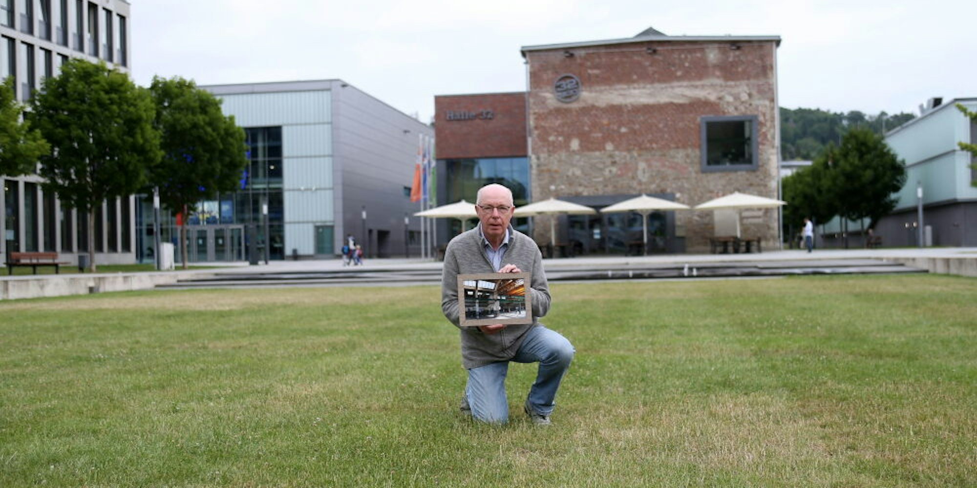 Der heute 73-Jährige begann im Jahr 1975 bei Steinmüller und arbeitete dort als bis zur Auflösung 2001 im Controlling. Das Abschieds-T-Shirt, das ihm damals seine Kollegen schenkten, hat er heute noch. Genau wie das Foto von der leeren Firmenhalle 32, bevor sie zum Kulturzentrum umgebaut wurde.