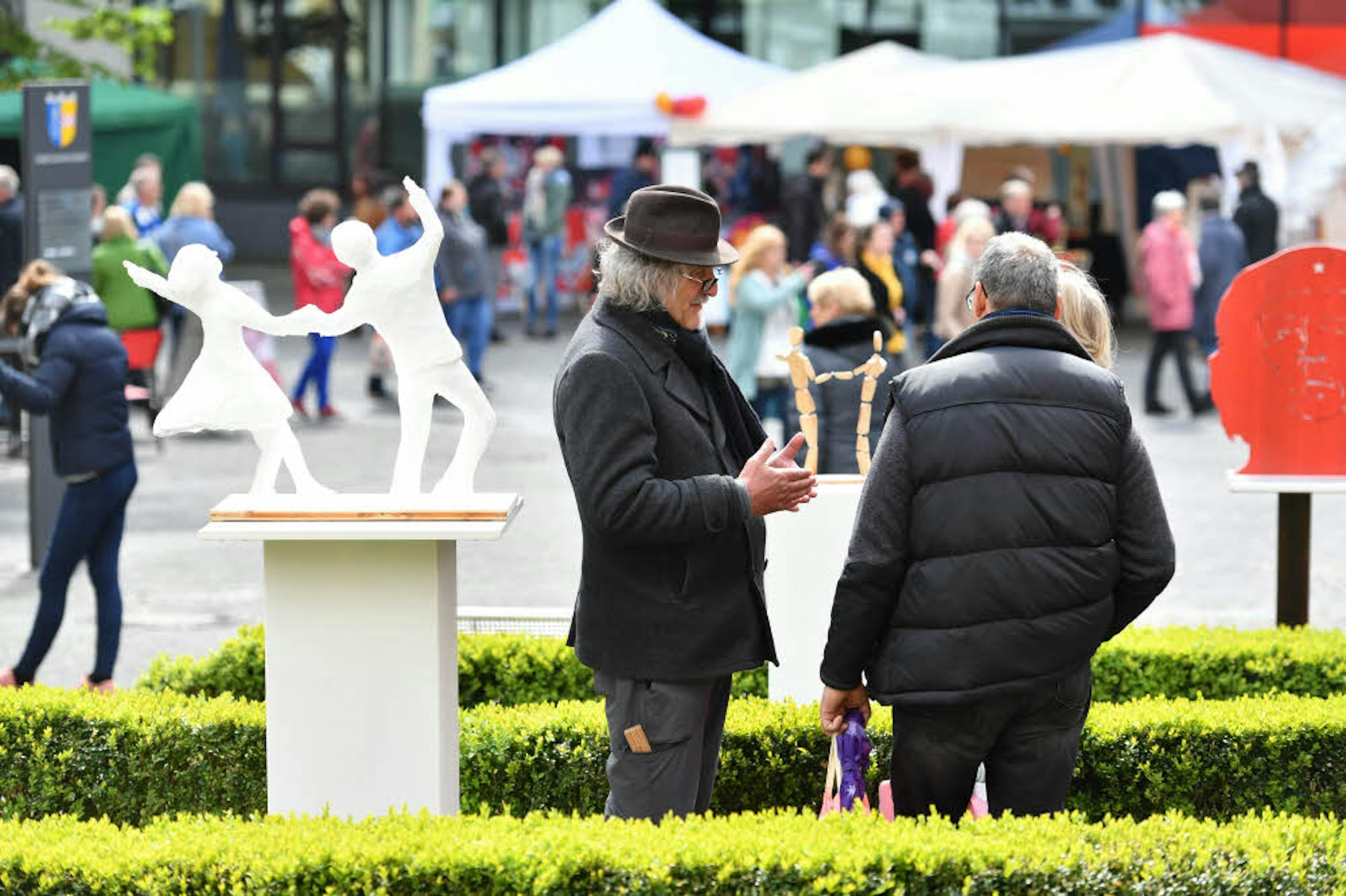 Gummersbach – Die Temperaturen lagen am Vormittag noch viel zu nah am Gefrierpunkt, und trotzdem hat Gummersbach am Sonntag den Frühling gefeiert. Ohne Winterjacke und Regenschirm ließ sich das Stadtfest kaum aushalten, da weckten die frühlingshaften Angebote mit farbenfrohen Bildern, leichter Sommermode und vielem mehr besonders große Sehnsüchte. Die Veranstalter hatten das Frühlingsfest diesmal ganz ins Zeichen der Kunst gestellt, die Innenstadt verwandelte sich in einen großen Schauraum.