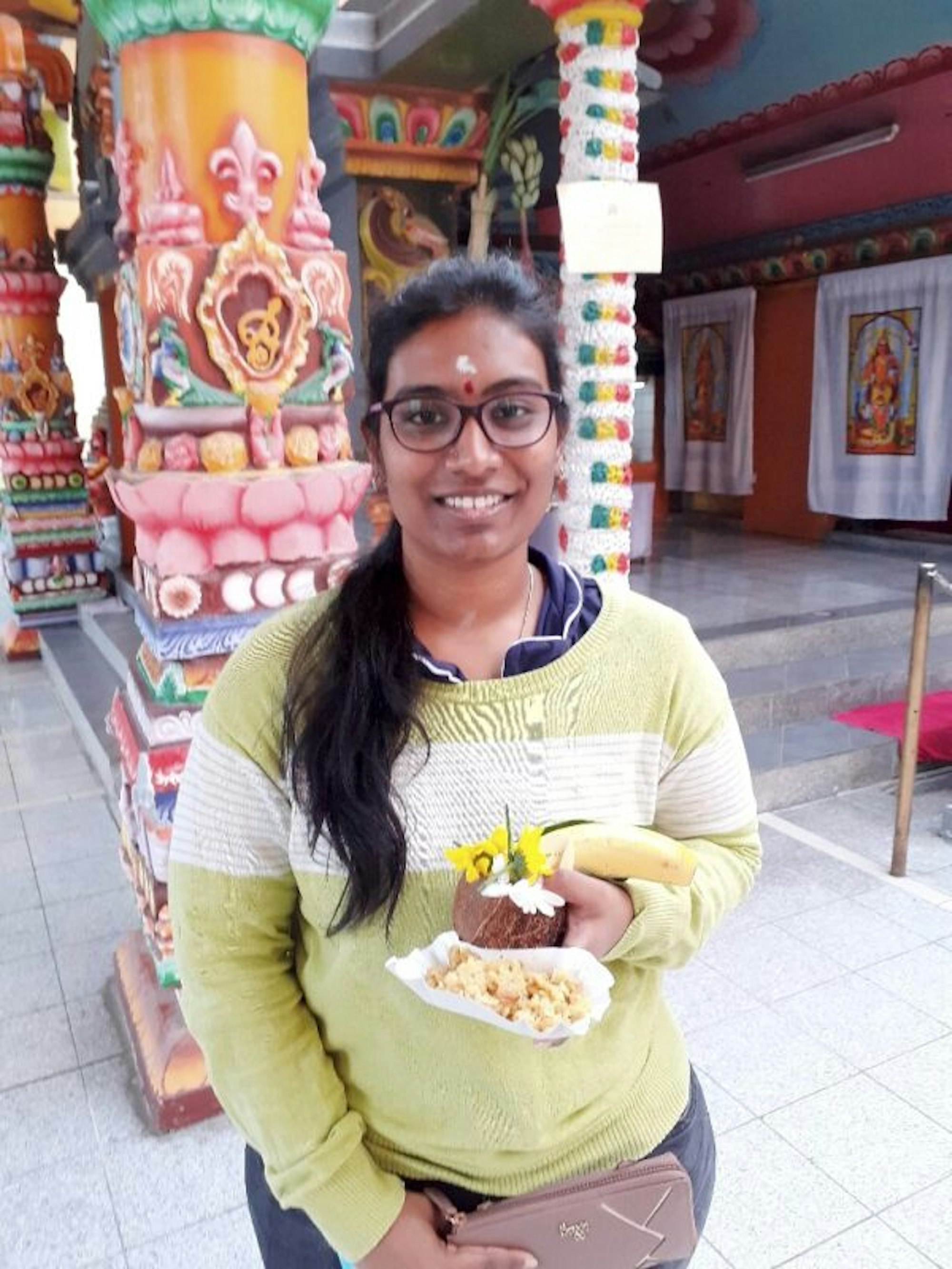 Jeder darf nach einer besonderen Zeremonie einen mit nach Hause nehmen. „Das ist zurzeit besonders wichtig, weil nur so wenige Teilnehmer kommen dürfen“, erklärt Selvanathan. „Jede Familie hat zu Hause einen Schrein. Da wird die Ganesha-Figur einen Monat lang aufgestellt, dann wird sie in Wasser aufgelöst. Dieses Wasser bringt Pflanzen Fruchtbarkeit, wenn sie damit begossen werden.“ Ein Junge filmt die Zeremonie mit dem Handy, Segen zum Mitnehmen für die Verwandten daheim.