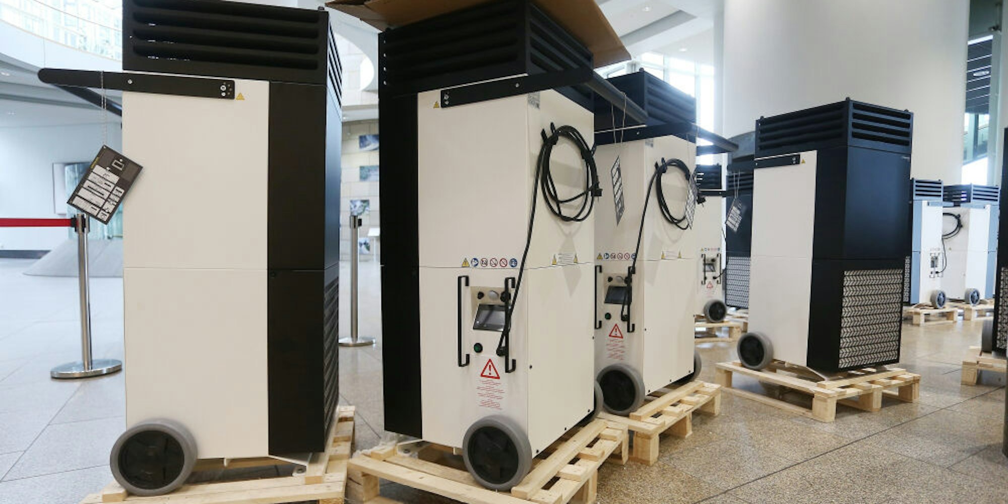 Luftfilteranlagen, so wie hier im Düsseldorfer Landtag, sollen auch in Gummersbach für Schulen und Kitas angeschafft werden.