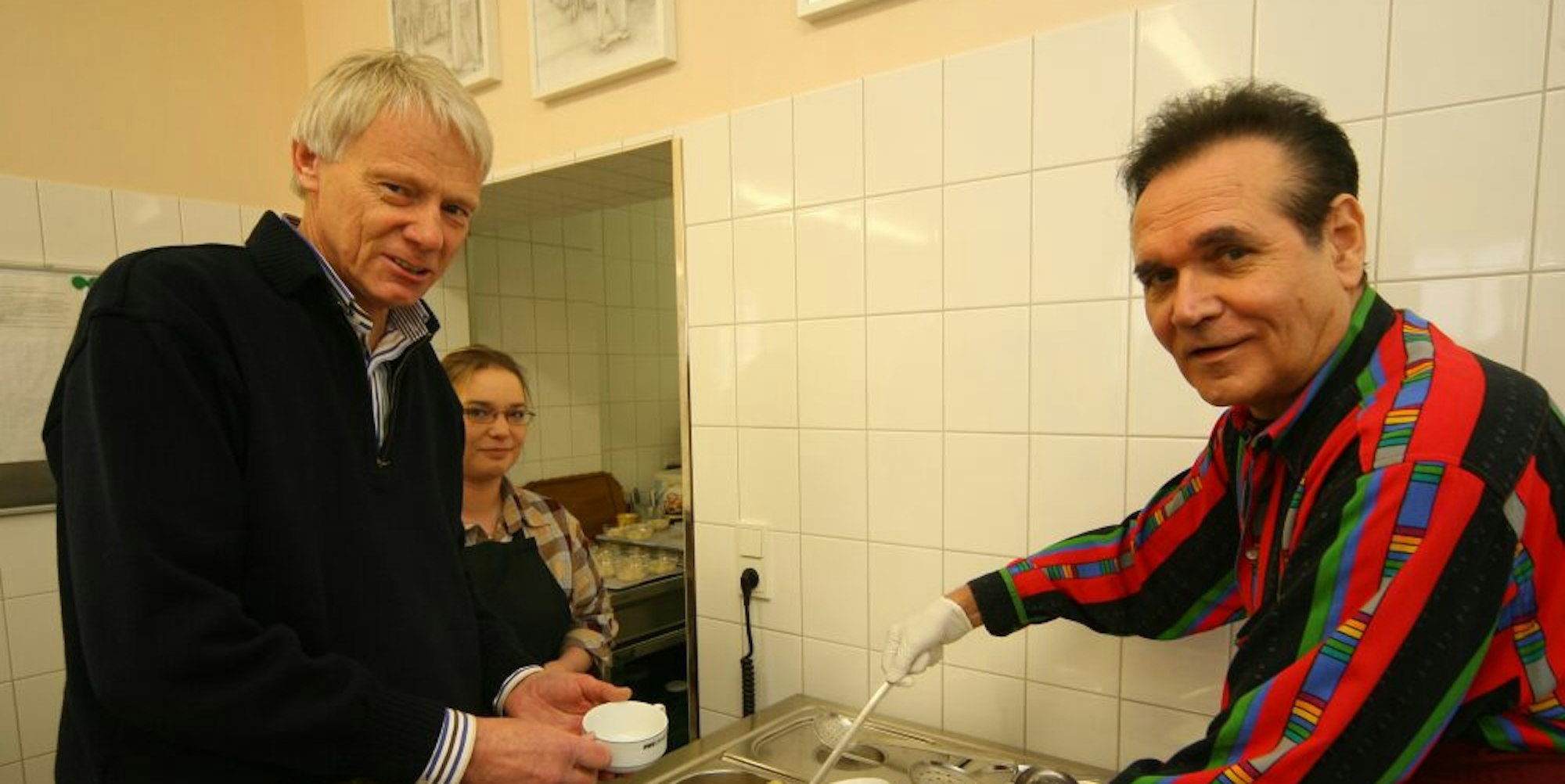 Ted Herold (r.), hier mit Tafelchef Ulrich Pfeifer, stand im Jahr 2012 in der Gummersbacher Suppenküche am Herd.