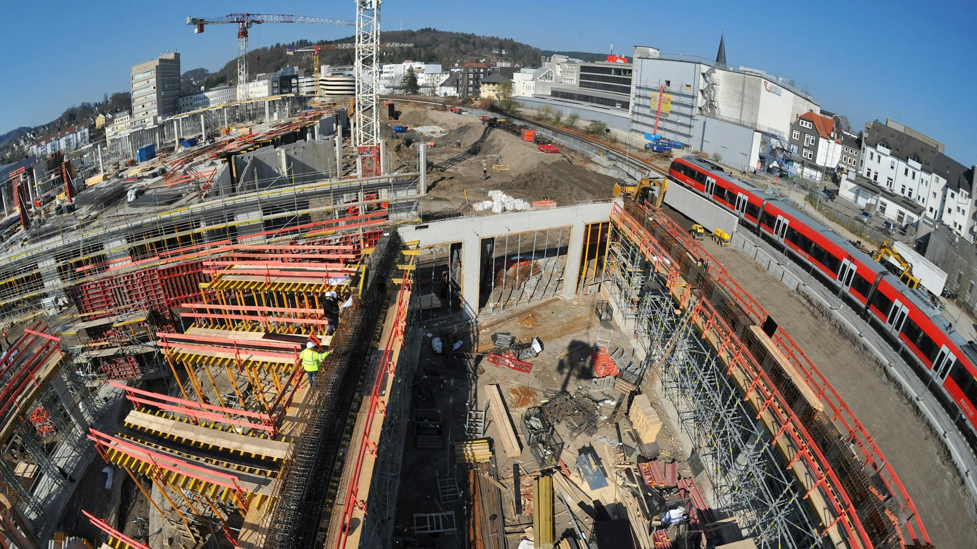Für den Bau des Forums (o. l.) wurden 800 Bohrpfähle gesetzt.