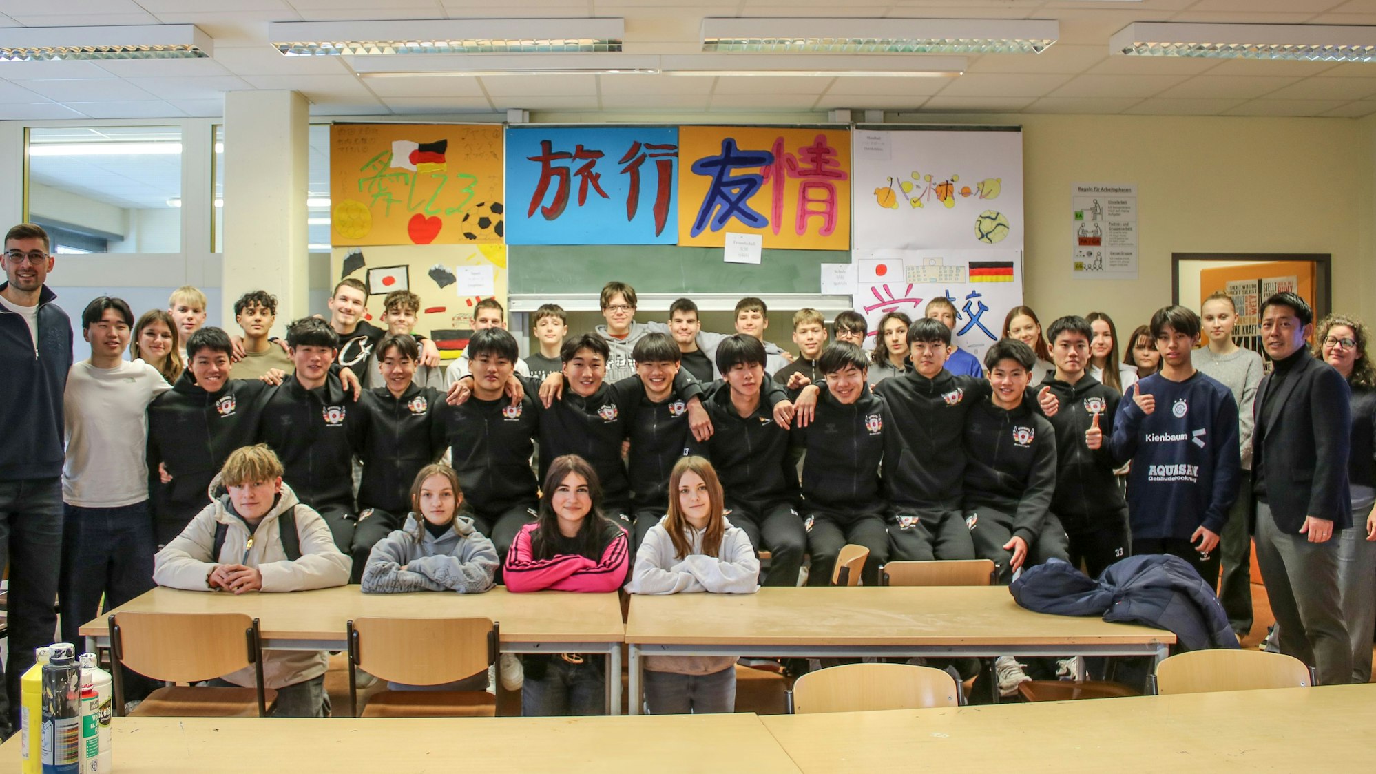 Japanische Handballer im Kunstunterricht an der Gesamtschule Marienheide.