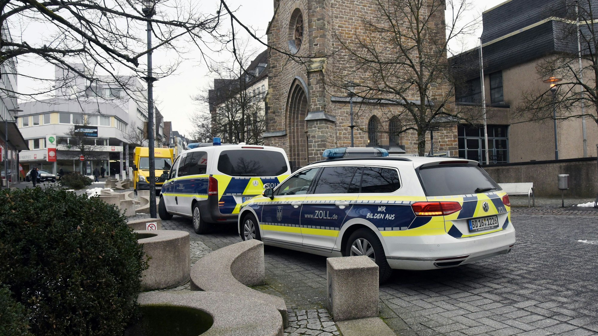 Einsatzfahrzeuge des Zoll standen am Morgen in Gummersbach.