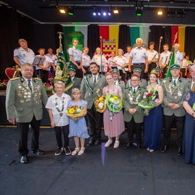 Kaiser wurde Johannes Dahl mit dem 239. Schuss. Kurioserweise löst er mit seiner Frau Edith als Kaiserin seinen Sohn Jens ab – auf gleiche Weise, wie er von ihm 2018 die Königswürde übernommen hat. Maurice Jockel holte den Prinzenvogel mit der 270. Kugel und machte Fiona Randig zu seiner Prinzessin.